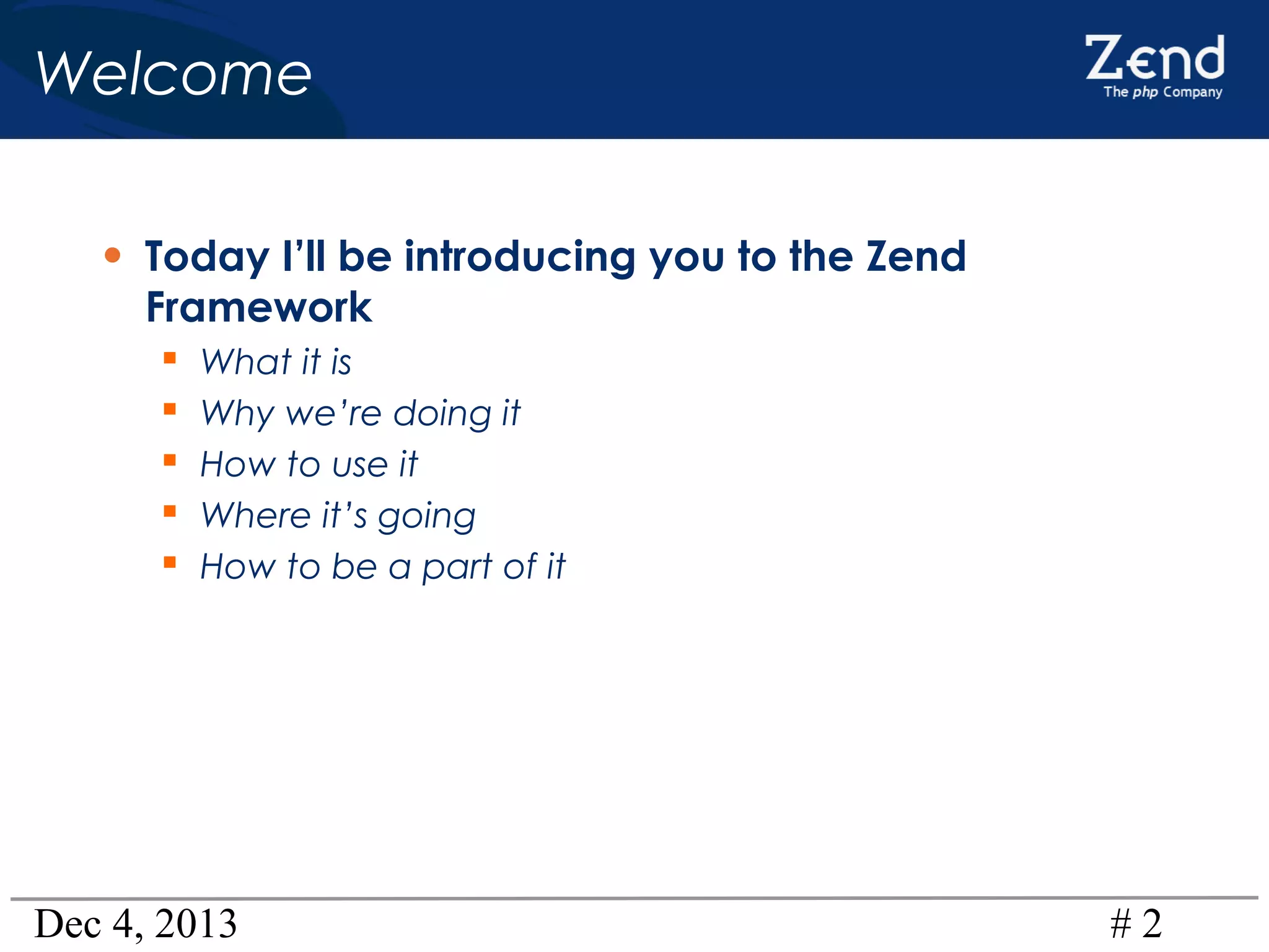 The document introduces the Zend Framework, which is a modular collection of PHP classes that simplify common tasks. It aims to be a leading PHP application development framework and demonstration of PHP 5 best practices. Some key components introduced include an MVC framework, database abstraction layer, input filtering, mail sending capabilities, and a Lucene-based search engine. The framework is open source under a BSD license and aims to make PHP application development simple while taking advantage of PHP 5 features.