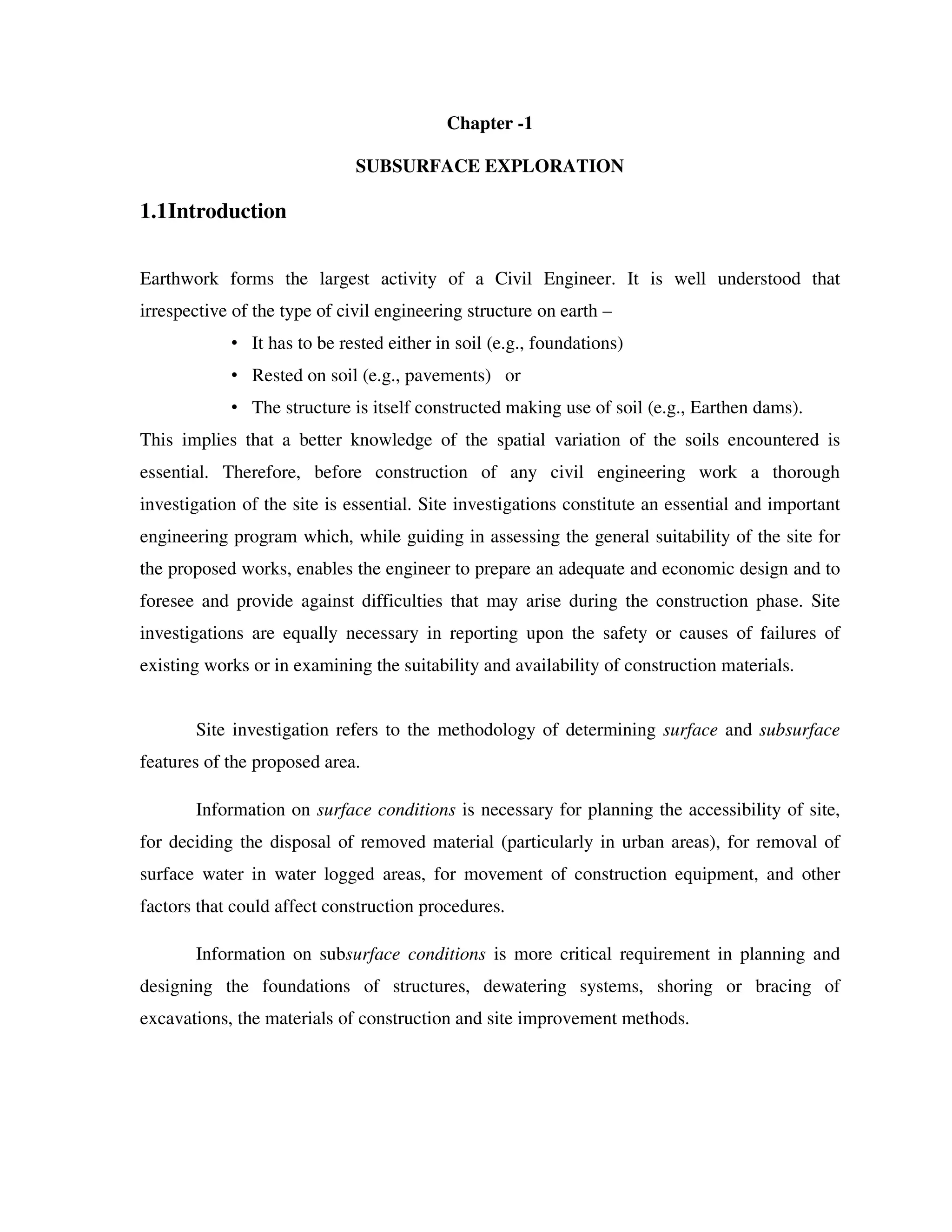 1. The document discusses subsurface exploration for geotechnical engineering projects. Subsurface exploration involves methods like trial pits, boreholes, and geophysical tests to understand soil conditions below the surface.
