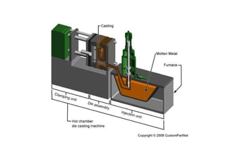 This document provides an overview of sand casting processes. It discusses the key components needed for sand casting including patterns, cores, molds, and gating systems. It describes different types of patterns such as one-piece, two-piece, and loose patterns. Common pattern materials like wood, metals, plastics, and plaster are also outlined. The document then reviews the basic sand casting process steps and terminology used in sand casting.