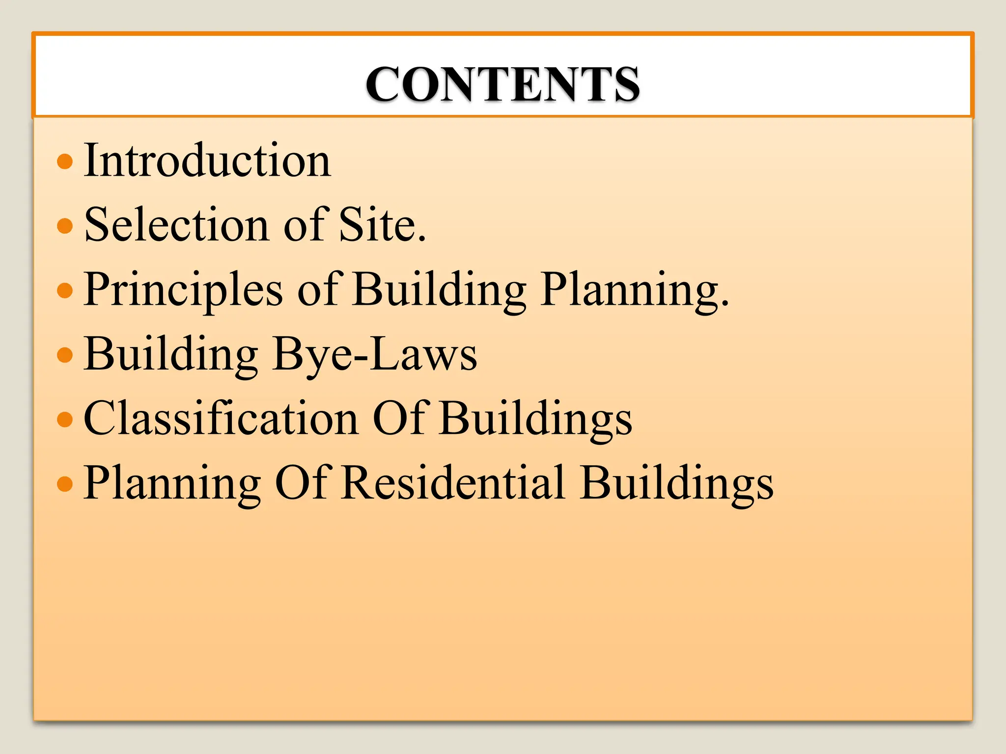 This document provides an overview of principles of building planning and factors affecting site selection for construction projects. It discusses 10 key principles of building planning - aspect, prospect, privacy, furniture requirements, roominess, grouping, elegance, sanitation, economy, and flexibility. It also outlines 10 important factors to consider when selecting a construction site, such as topography, nature of subsoil, groundwater level, available facilities, neighborhood, vegetation, site shape, and availability of materials and labor. Building planning aims to apply these principles and site selection factors to design efficient, comfortable, and hygienic structures.