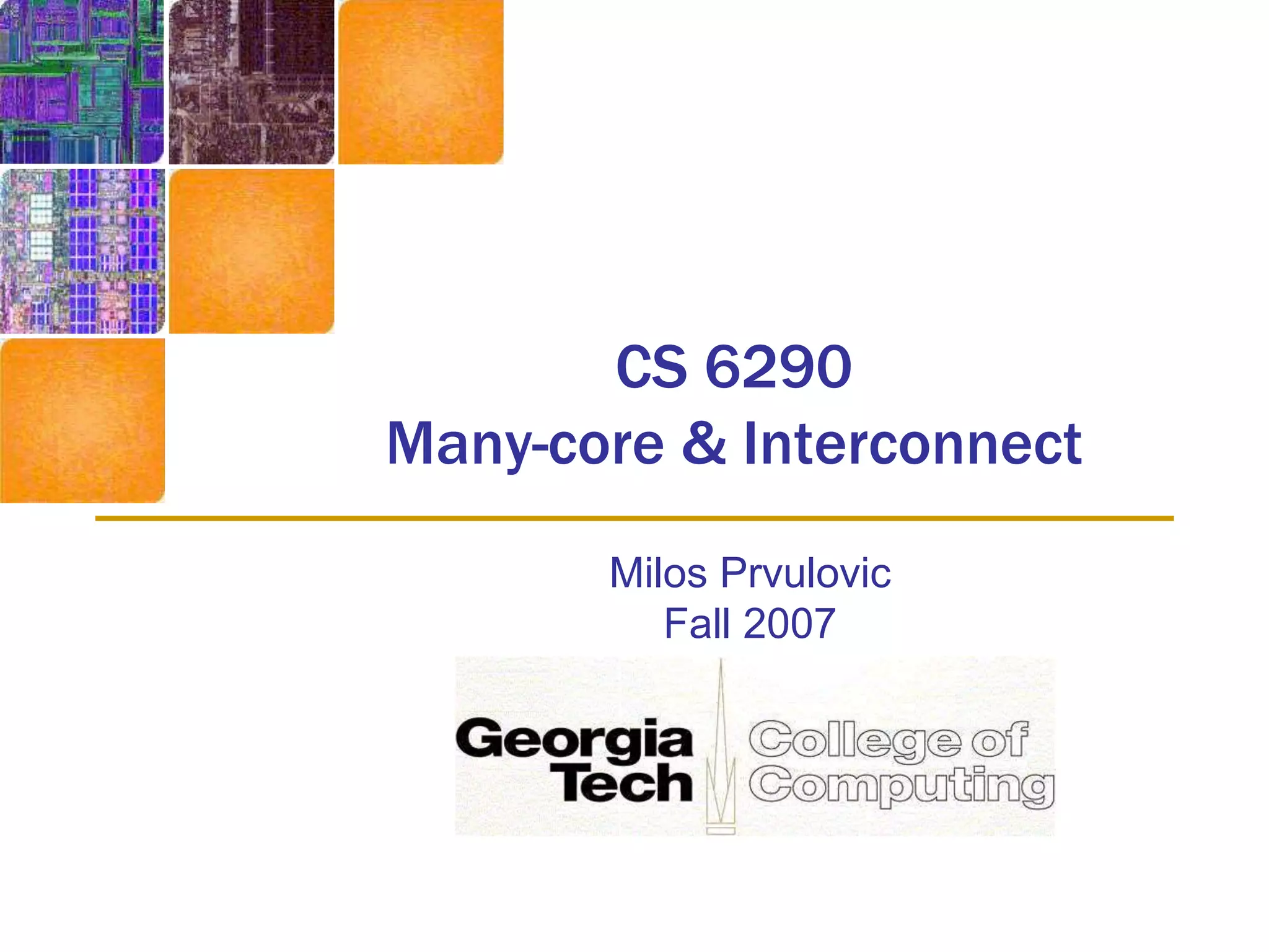This document discusses interconnect networks for many-core processors. It describes shared and switched network topologies, including different arbitration, routing, and switching techniques. Key points covered include distributed arbitration for shared networks, routing methods like source-based and destination-based, and switch technologies like crossbars and Omega networks. Network performance factors like latency, bandwidth, and contention are also summarized. Cache coherence issues for on-chip networks are briefly discussed, along with solutions like non-uniform cache architectures and directory-based caching.