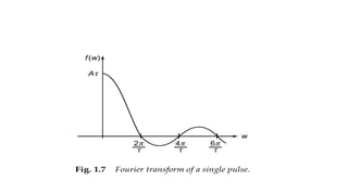 3) Modulation and multiplexing which allow signals to be transmitted efficiently over a channel by modifying the signal or combining multiple signals.
