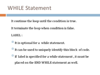 The document contains code snippets that update employee salary records in a database table based on certain conditions. The snippets use SQL queries, variable declarations, IF/CASE statements, and loops to select employee data, check salary amounts, calculate bonuses, and update salaries accordingly.