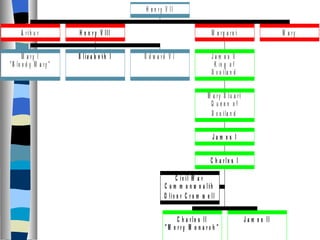 - The English Civil War is examined in more detail, outlining the reasons for conflict between King Charles I and Parliament, as well as the outcomes of the war and subsequent Restoration and Glorious Revolution periods.