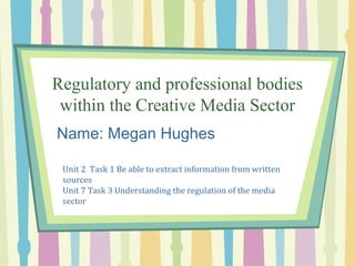 This document discusses several regulatory and professional bodies that govern the UK creative media sector, including: