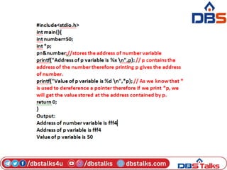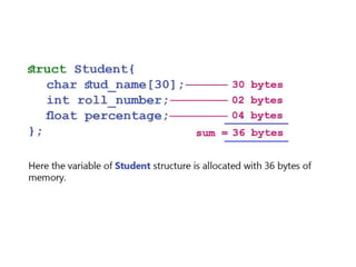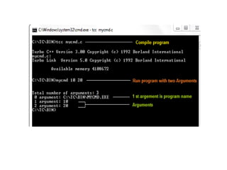 The document discusses functions in C programming. It defines a function as a block of code that performs a specific task. There are two types of functions: predefined standard library functions and user-defined functions. The key aspects of a function are its declaration, definition, and call. Functions can be used to break a large program into smaller, reusable components. Parameters can be passed to functions by value or by reference. Recursion is when a function calls itself, and is used in algorithms like calculating factorials. Dynamic memory allocation allows programs to request memory at runtime using functions like malloc(), calloc(), realloc(), and free().