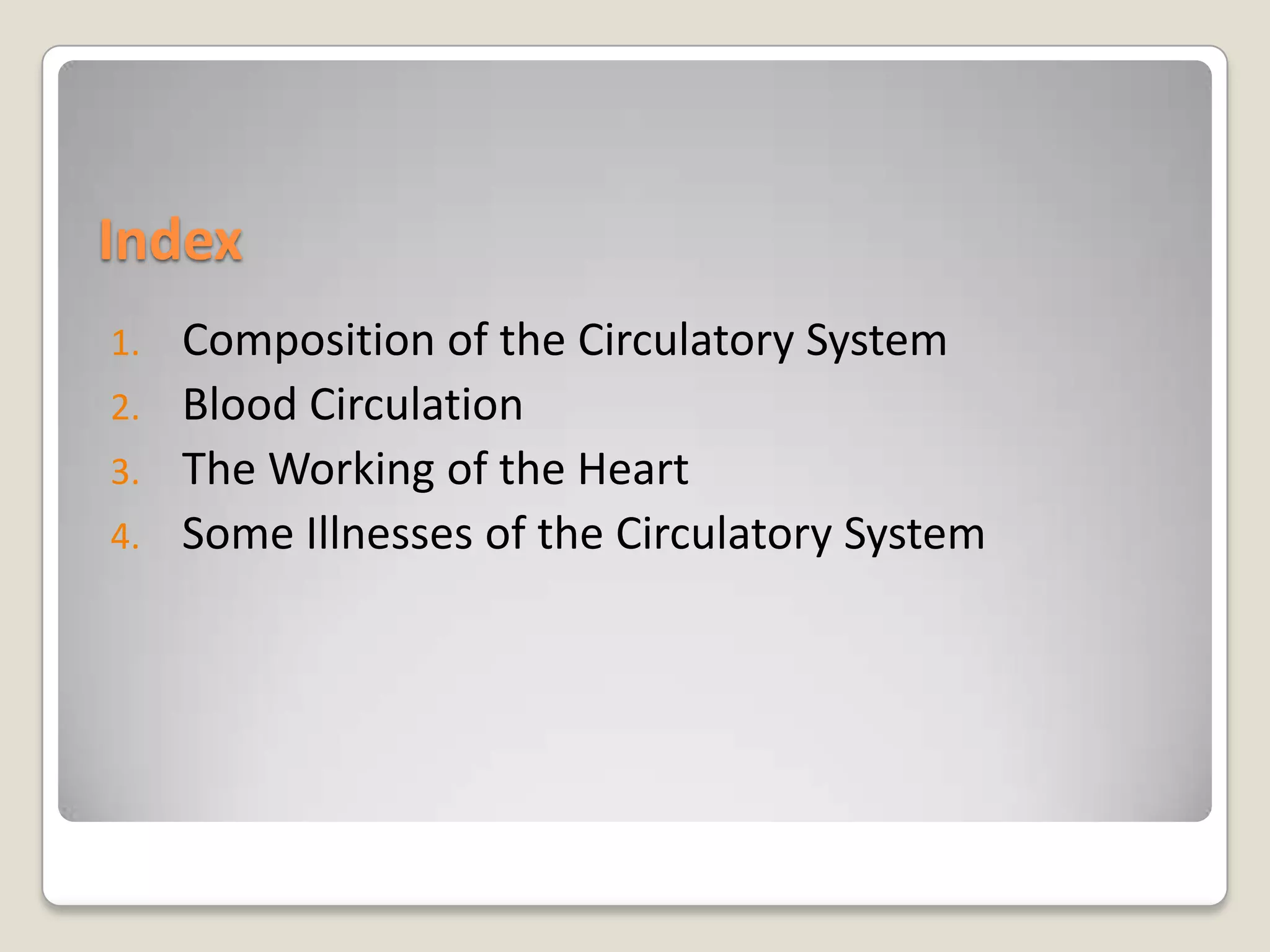 The circulatory system consists of the heart, blood vessels, and blood. The heart is a muscular pump made of four chambers that pumps blood through two circuits - the pulmonary circuit which sends blood to the lungs, and the systemic circuit which pumps blood to the entire body through arteries and veins. Blood carries oxygen, nutrients, hormones, and waste products and helps maintain homeostasis. Some common circulatory illnesses include arteriosclerosis, thrombosis, heart attacks, and angina.