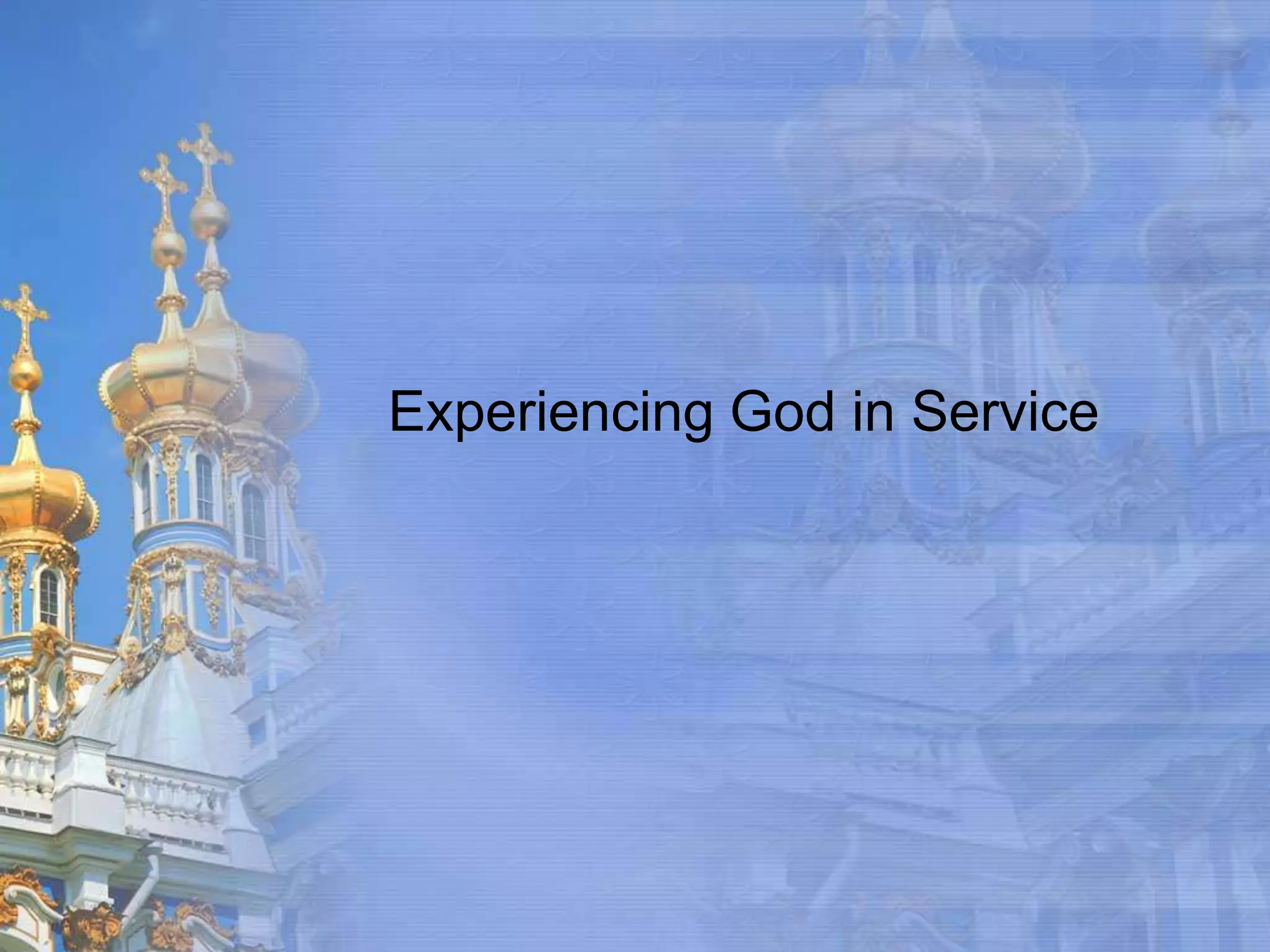 The document discusses how experiencing God involves serving humanity through compassion and identifying with the poor, as Jesus did through his crucifixion; it emphasizes that true service comes from a desire to bring justice in the world and continue Christ's mission, and calls readers to empty themselves through voluntary poverty and acts of nonviolence to alleviate suffering.