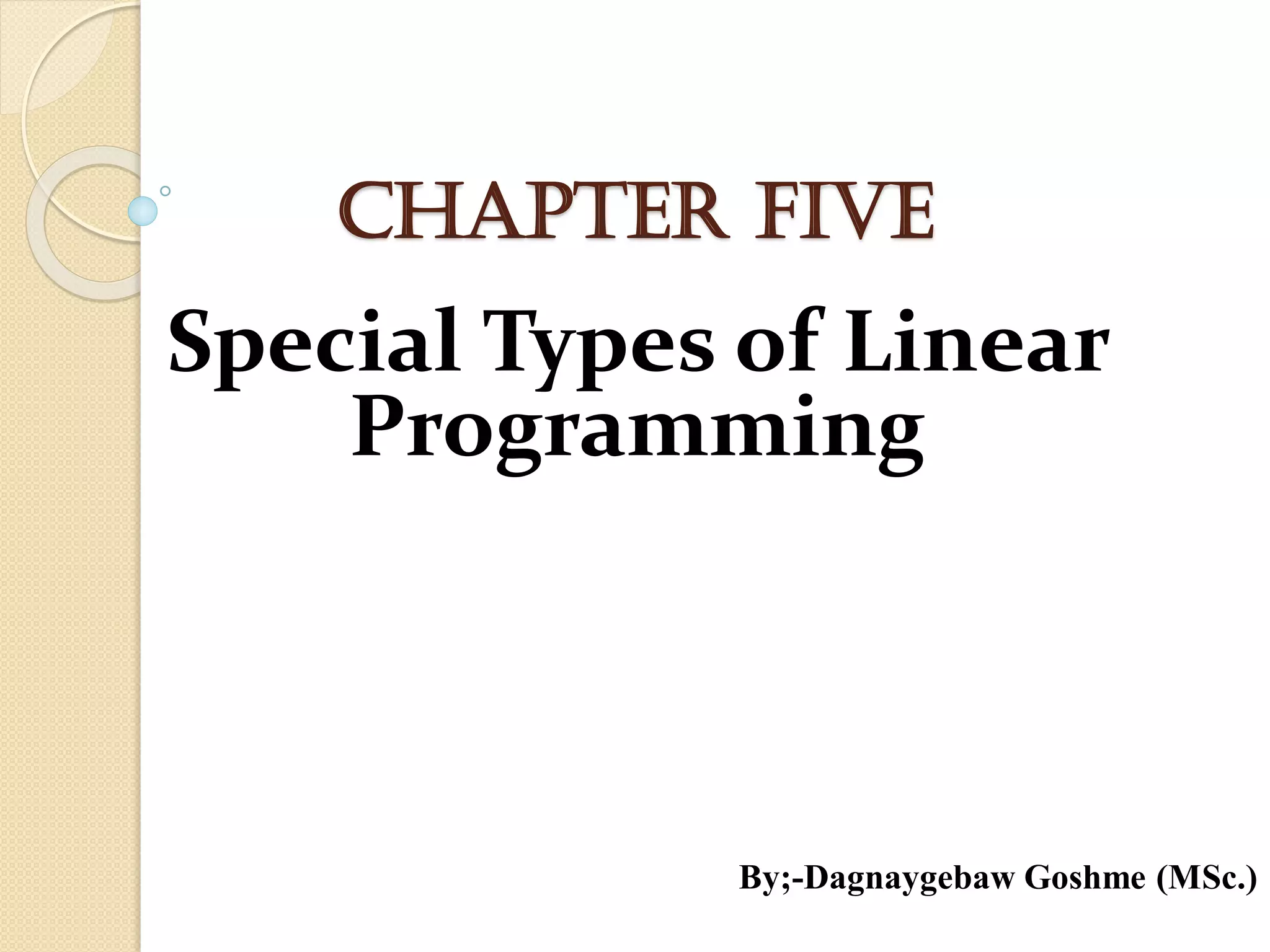 The document summarizes different methods for solving transportation problems in linear programming, which involve distributing goods from multiple sources to multiple destinations at minimum cost. It describes three common methods - the North-West Corner method, Least-Cost method, and Vogel's Approximation Method. Each method involves iteratively allocating quantities to routes based on costs until all supply is distributed and demand is met. Examples are provided to illustrate how each method solves a transportation problem step-by-step.
