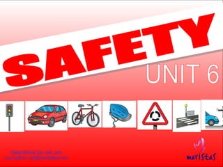 The document discusses various objects related to transportation and traffic safety such as traffic lights, cars, bikes, signs, and more. It mentions wheels, helmets, gloves, roads, and crosswalks. It also refers to directions like going right, left, and stopping as well as types of vehicles like vans and buses.