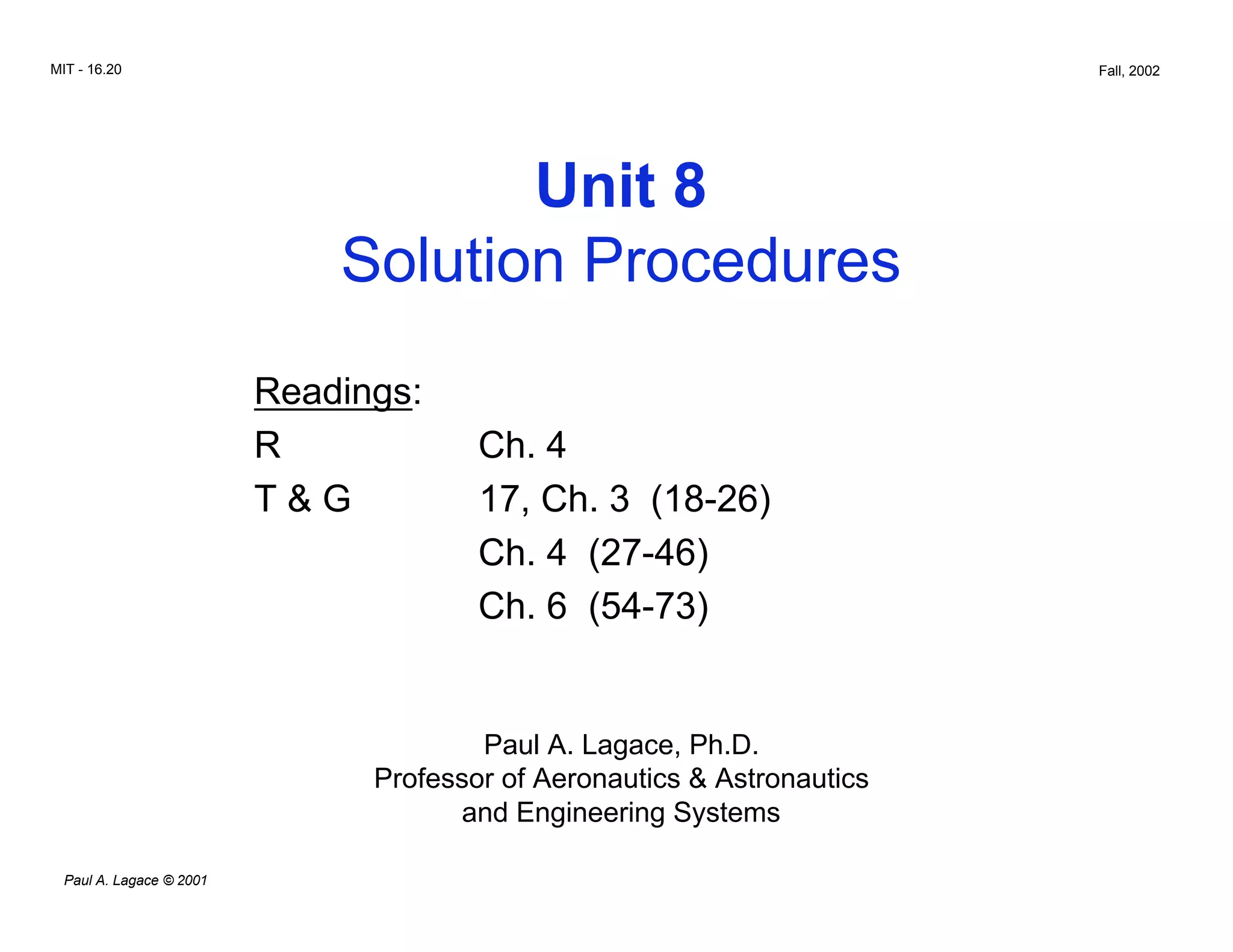This document discusses solution procedures for elasticity problems, specifically the use of stress functions. It introduces the inverse method where a stress function is assumed that satisfies equilibrium, then the stresses are determined from the function. This yields an exact solution. The semi-inverse method is similar but makes simplifying assumptions based on physical intuition to obtain solvable equations. Stress functions are presented for examples of uniaxial loading and stress around a hole to illustrate the methods.