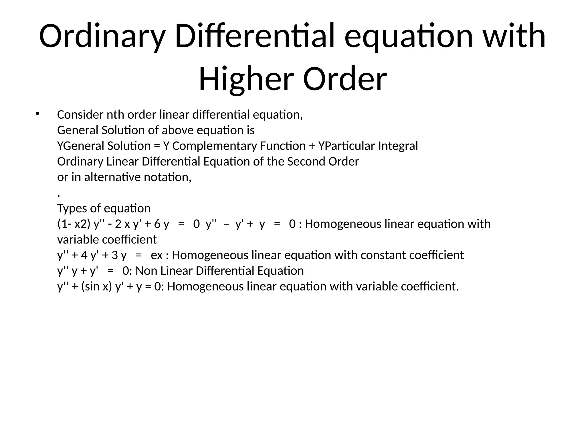 where a_1,a_2,…,a_n are constants which may be real or complex or functions of x.
