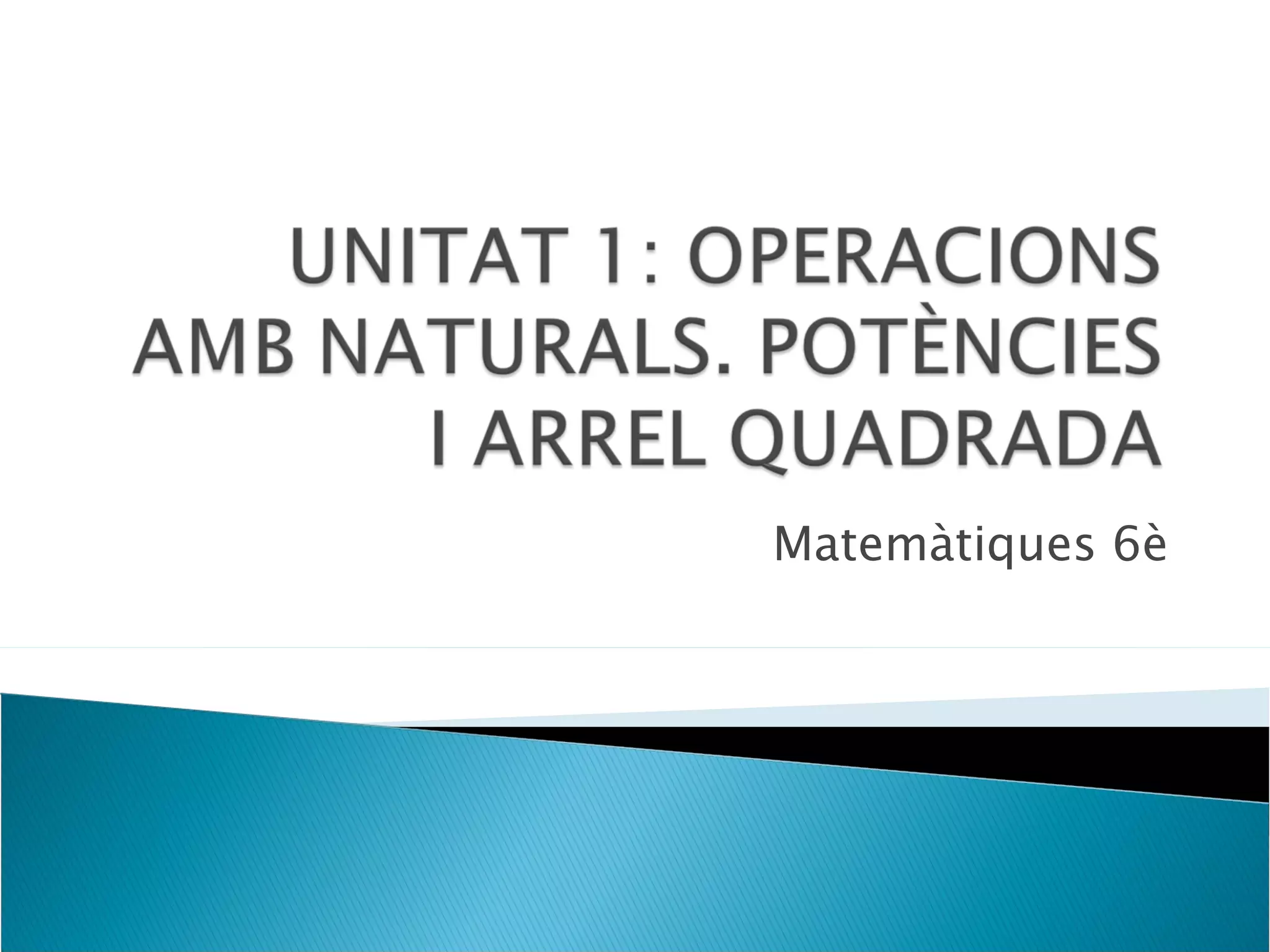 Frases i expressionsnumèriques Potències: el quadrat, el cub i d’altres Potències de base 10 Arrel quadrada