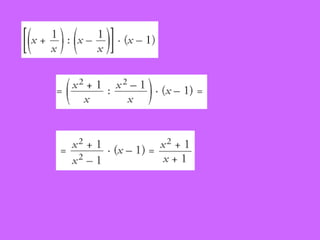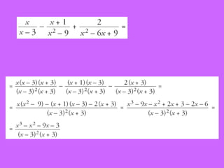 Per a realitzaruna suma/resta de fraccions hem de tenir el mateix denominador, com no són iguals hem de fer el mcm dels denominadors. Anem a veure si podem simplificar la fracció. Factoritzem el numerador: Com veiem que no podrem simplificar res, es queda així. Suma i resta de fraccions algebraiques