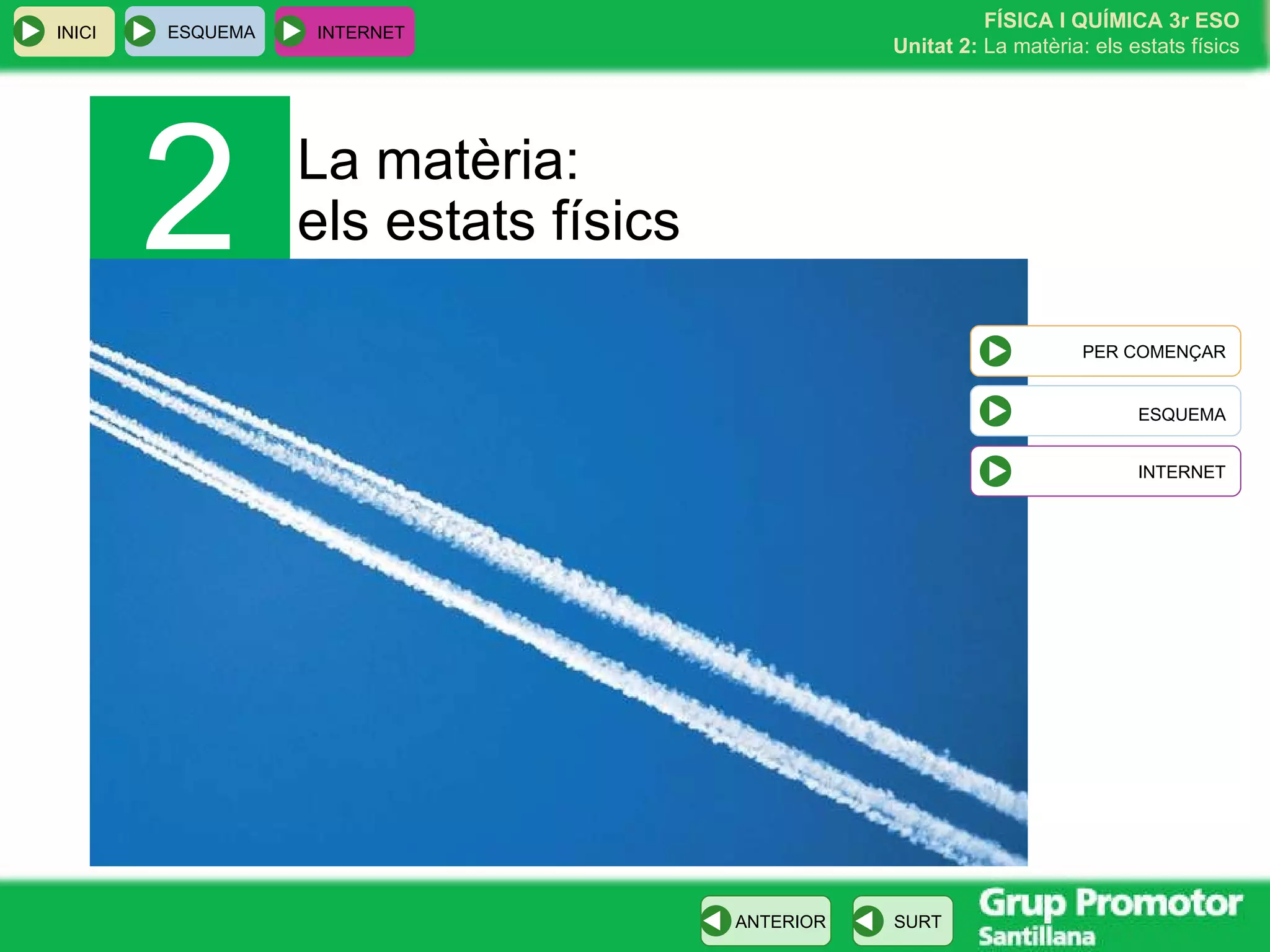 La matèria: elsestats físics 2 INICI ESQUEMA INTERNET PER COMENÇAR ESQUEMA INTERNET
