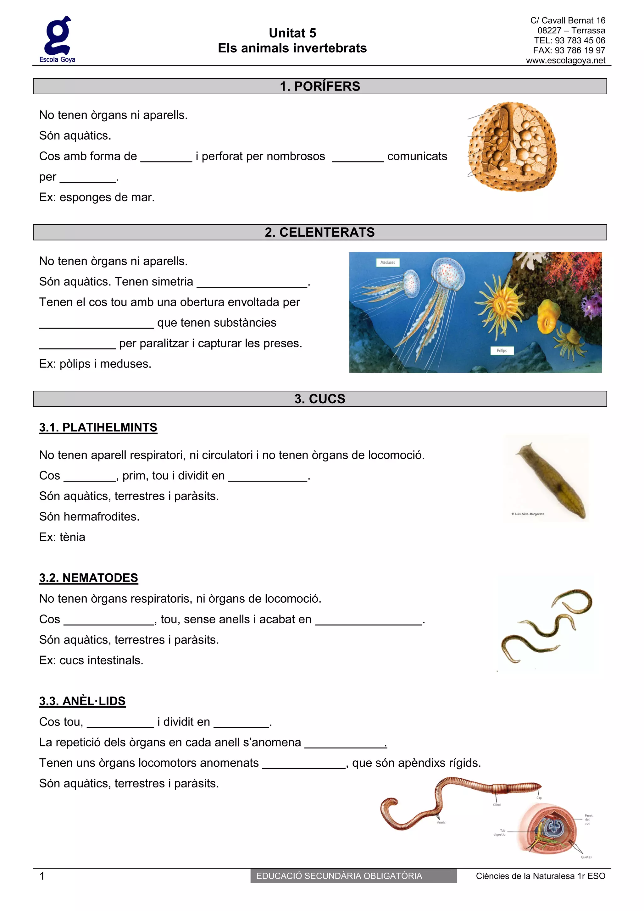Els animals invertebrats FAX: 93 786 19 97