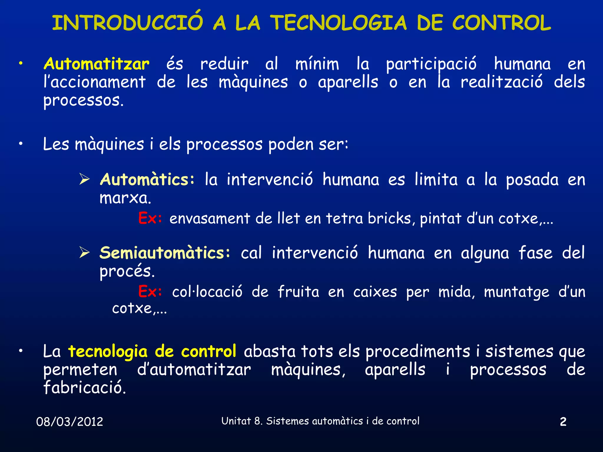 08/03/2012 Unitat 8. Sistemes automàtics i de control 2