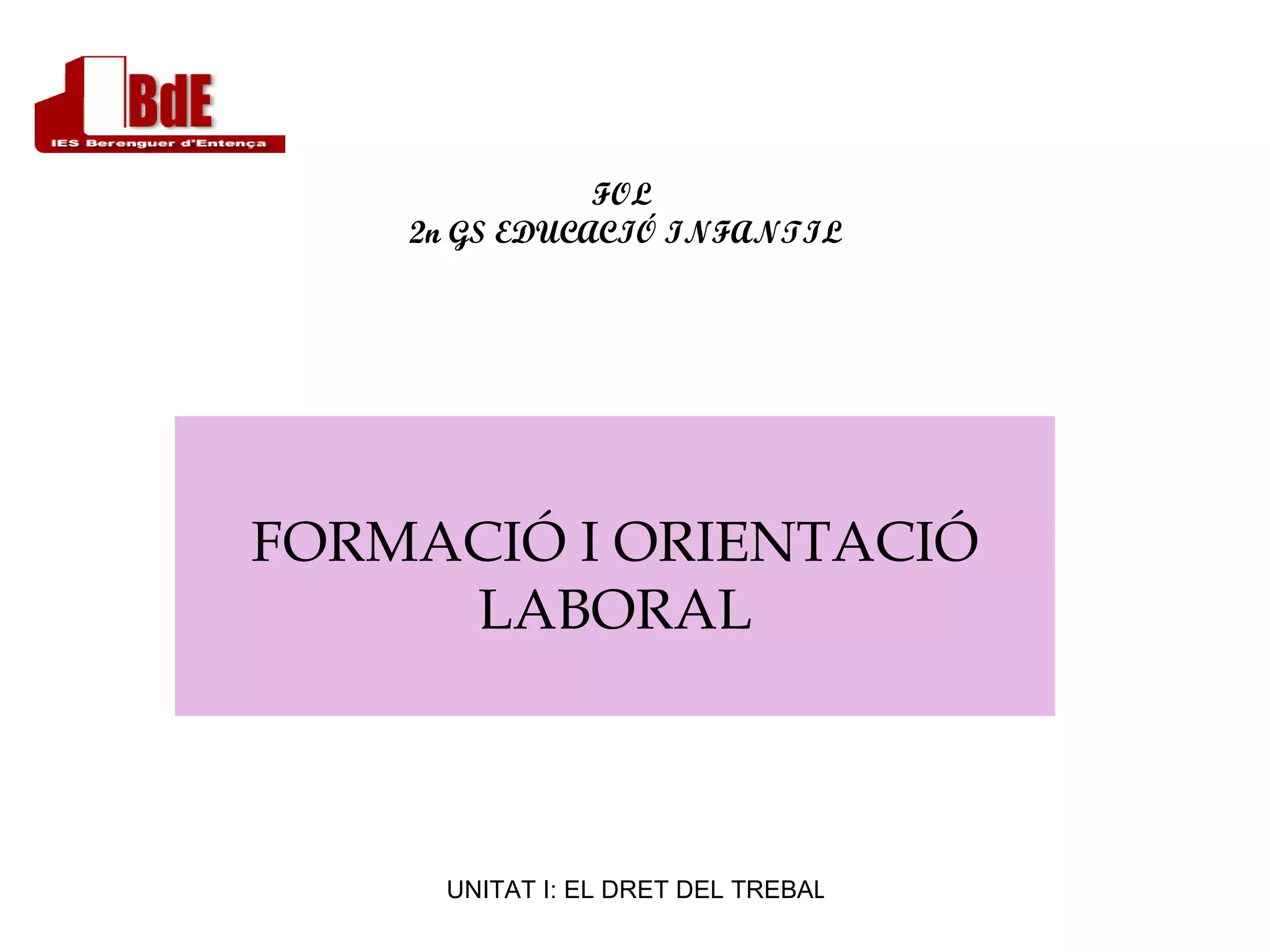 FOL 2. ELDRET LABORAL REGULA LES RELACIONS INDIVIDUALS I COL.LECTIVES QUE TENEN L´ORIGEN EN EL TREBALL PRESTAT DE MANERA PERSONAL, VOLUNTÀRIA, PER COMPTE D´ALTRI I RETRIBUÏT SOTA LA DEPENDÈNCIA D´UN EMPRESARI.