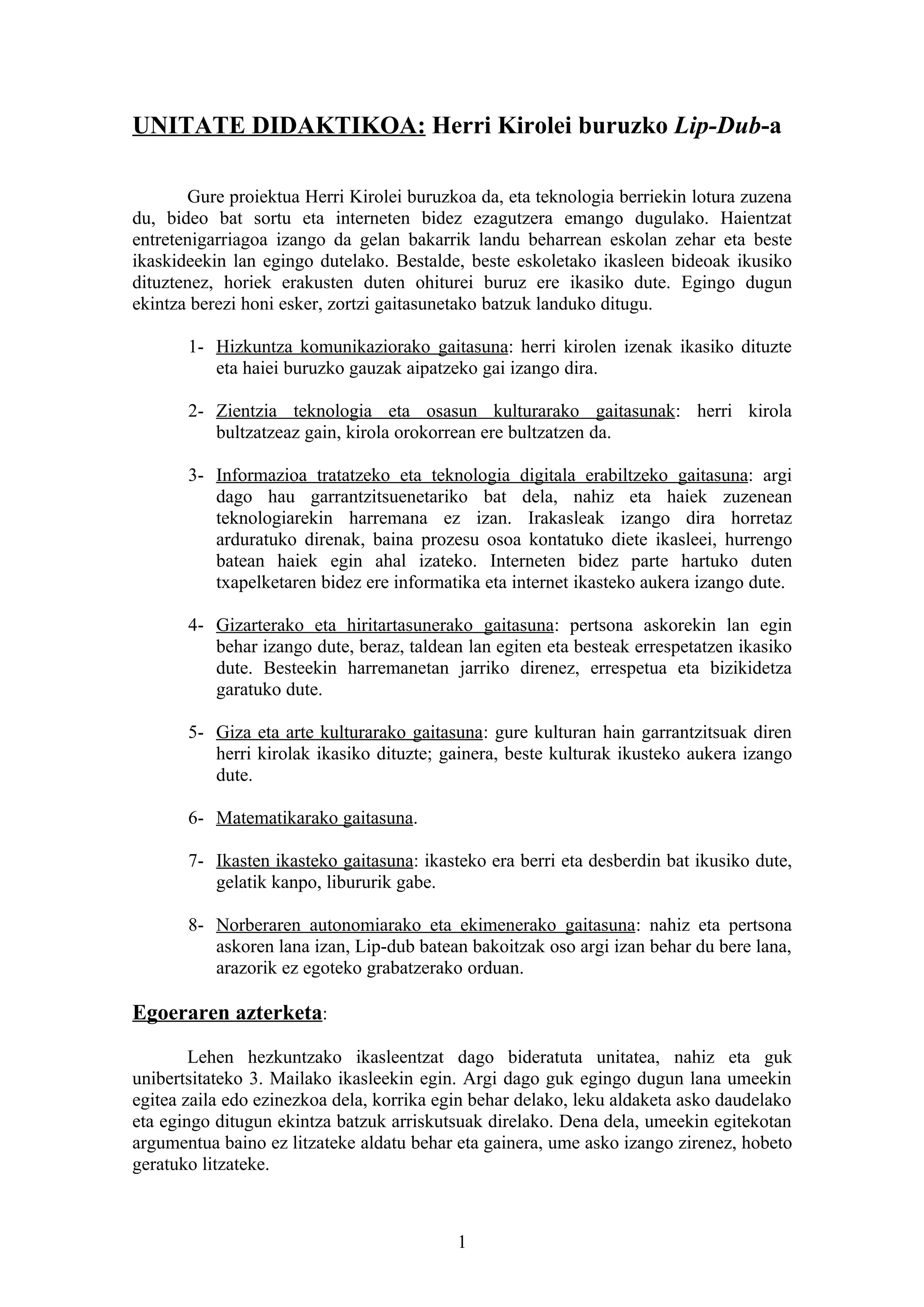 UNITATE DIDAKTIKOA: HerriKirolei buruzko Lip-Dub-a