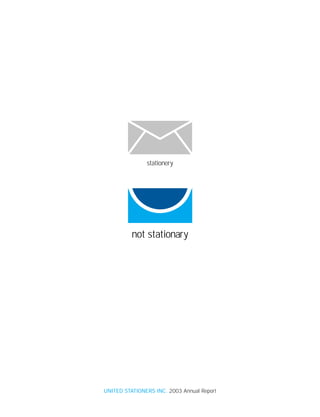 United Stationers Inc. saw modest growth in 2003 despite challenges in the economy. The company focused on becoming a better partner to manufacturers and resellers through initiatives like category management, waste reduction, and making business easier for customers. United Stationers aims to accelerate growth, improve margins, and ensure it offers the right products and services through these strategic changes. The company expects its focus on high-performance teams, talent development, and strengthening relationships will position it for continued financial improvement and 6-9% annual sales growth going forward.