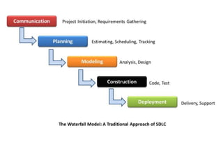 3. Common software process models include waterfall, incremental, evolutionary (like prototyping and spiral), and concurrent development models. Each has advantages and disadvantages depending on the project.
