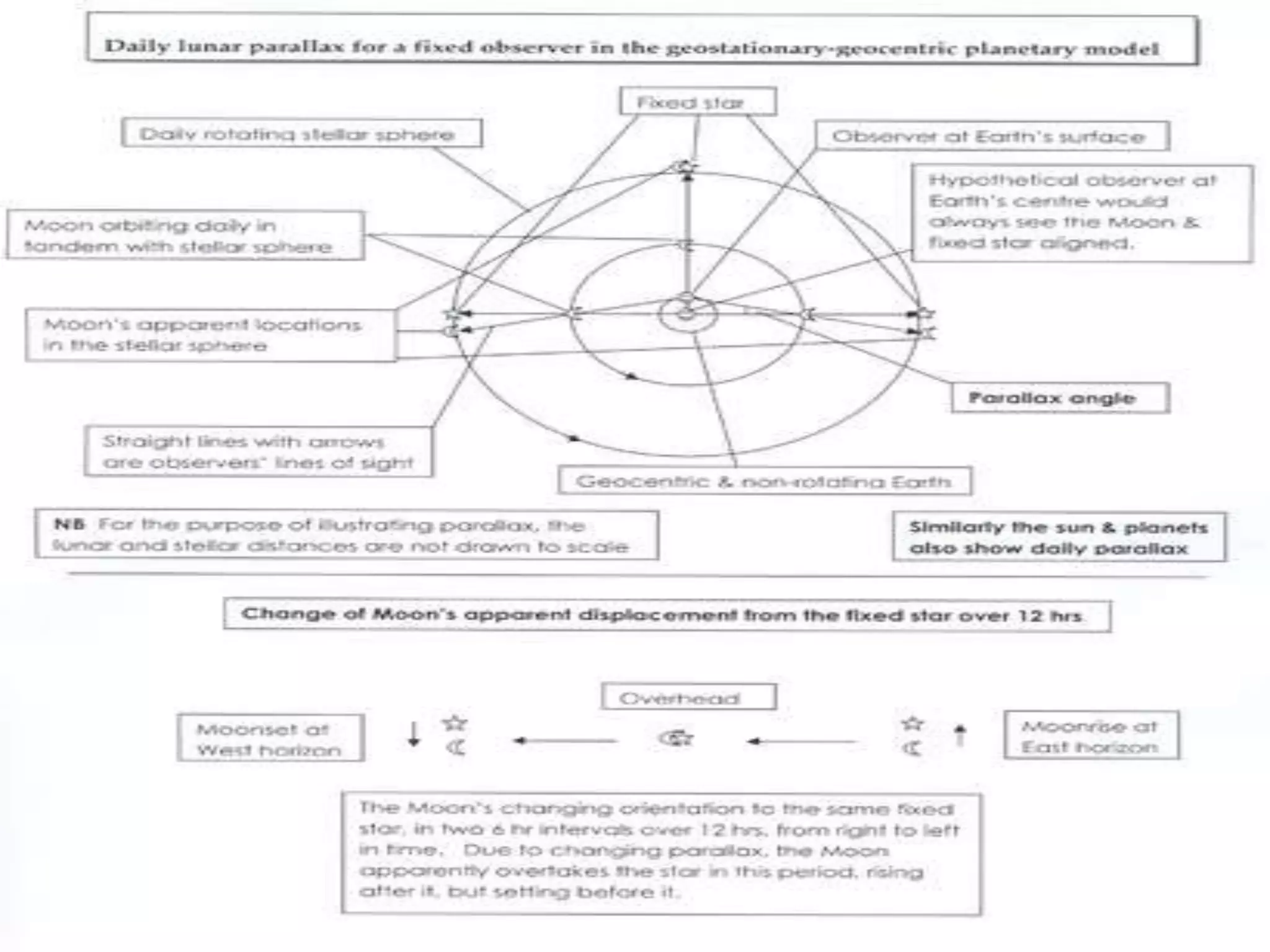 The diagram (above) for stellar parallax can illustrate lunar parallax as well, if the diagram is taken to be scaled right down and