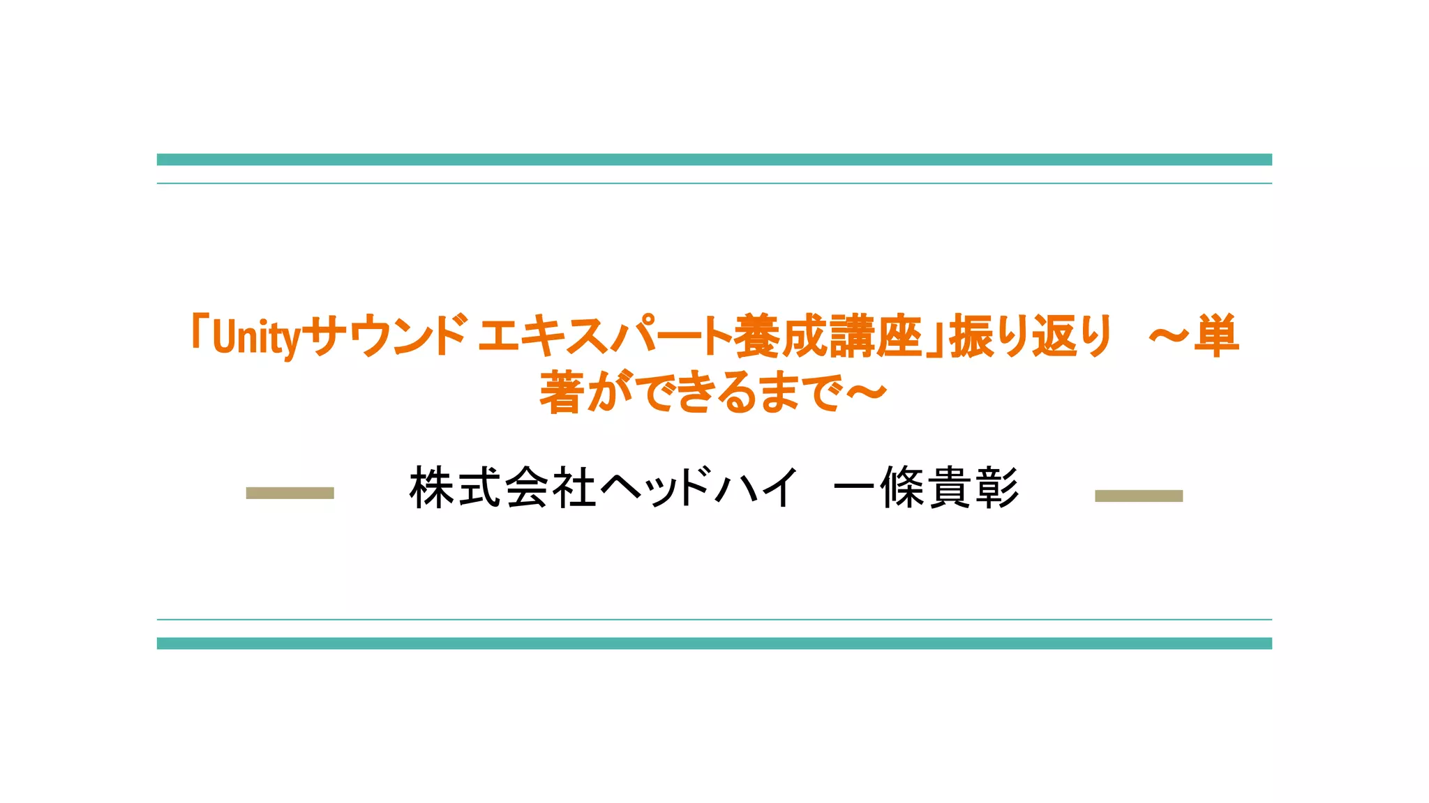 「Unityサウンド エキスパート養成講座」振り返り ~単 著ができるまで~ 株式会社ヘッドハイ 一條貴彰