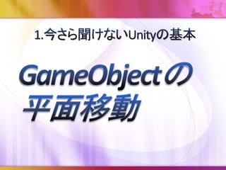 Unityの基本機能のすべてを紹介していません。 むしろほんの僅かです。 作業効率が上がったらラッキーぐらいに思って ください。 不足分は書籍やドキュメントをご覧ください。 誤字脱字・誤りなどがありましたら遠慮なくご連 絡ください。