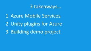 3. The document demonstrates how to build a demo project using the Prime31 plugin, including downloading the plugin, adding an Azure Mobile Service, and creating a Unity project.