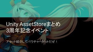 山分け方法はみんなで決める!総額 $3,000USD分のアセットストアバウチャー山分けキャンペーン!のプレゼン企画案です。 「アセット紹介編」 ブログはこちら http://www.asset-sale.net/