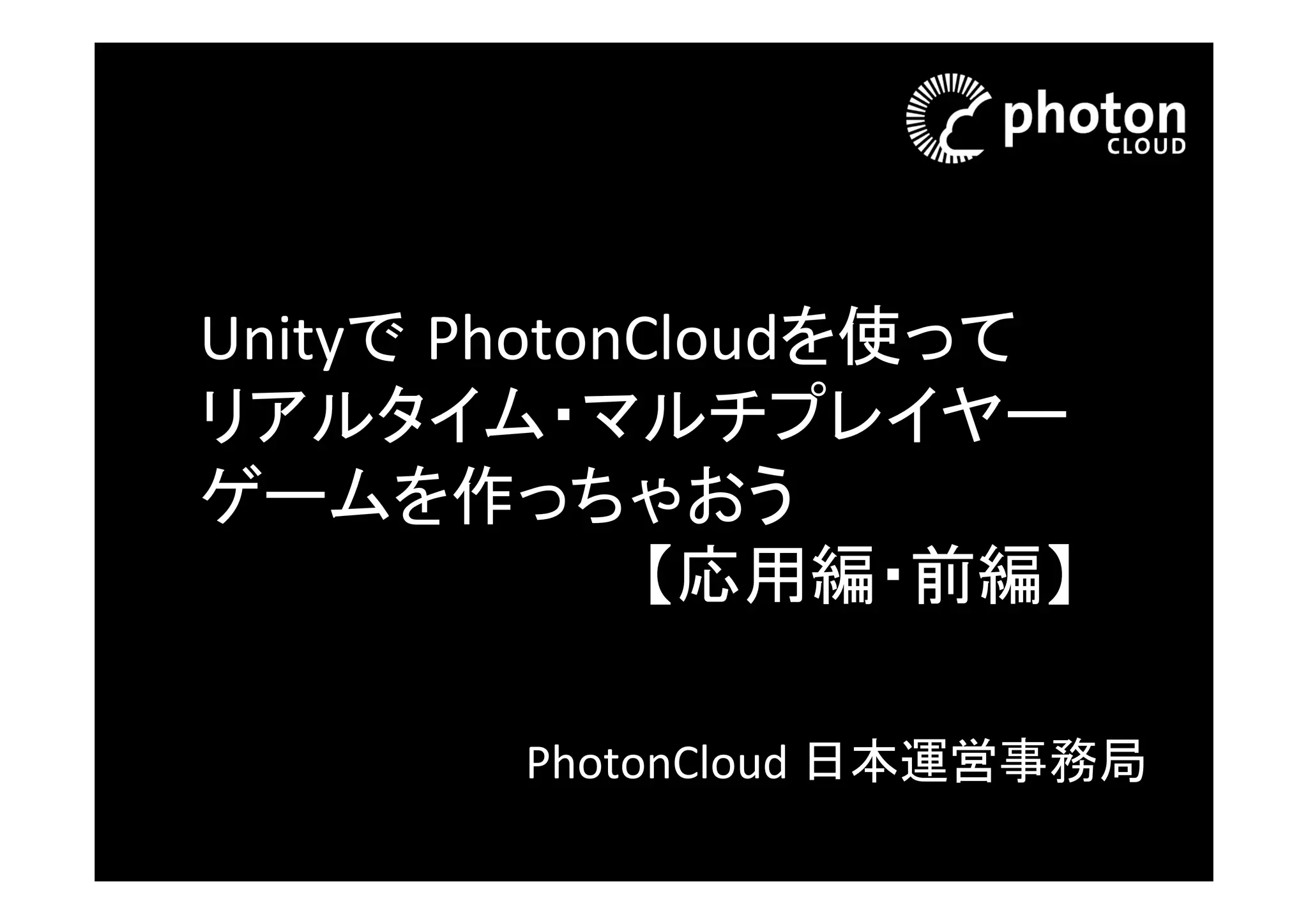 Unityで Photonを使ってリアルタイム・マルチプレイヤーゲームを作っちゃおう【応用編】 PDF