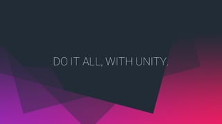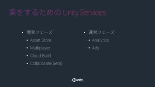 2016/5/28 GameServerDevelopers vol.1 で発表したときのスライド を、 2016/6/10 APPS JAPAN用にアップデートしたスライドです。 モバイルアプリの開発が複雑化、そして多様化する中で楽をするために知っておくと便利なUnityのサービスたちをご紹介します。
