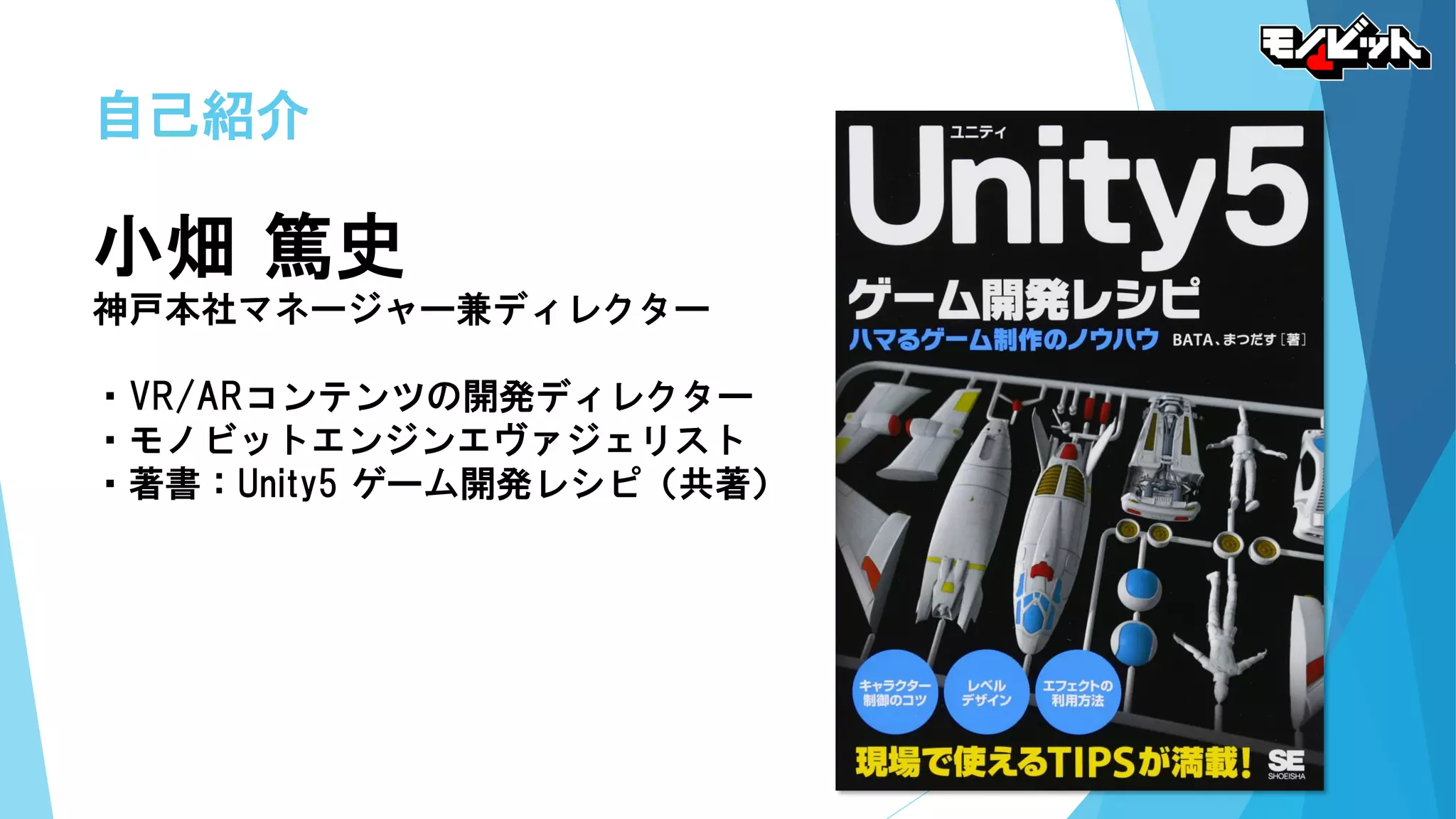 2018年11月24日 Unity道場京都スペシャル3にて行われましたイベントにて、モノビット社の小畑がモノビットエンジンでマルチプレイゲームを開発するための導入部分を実演形式で解説した際のスライドです。