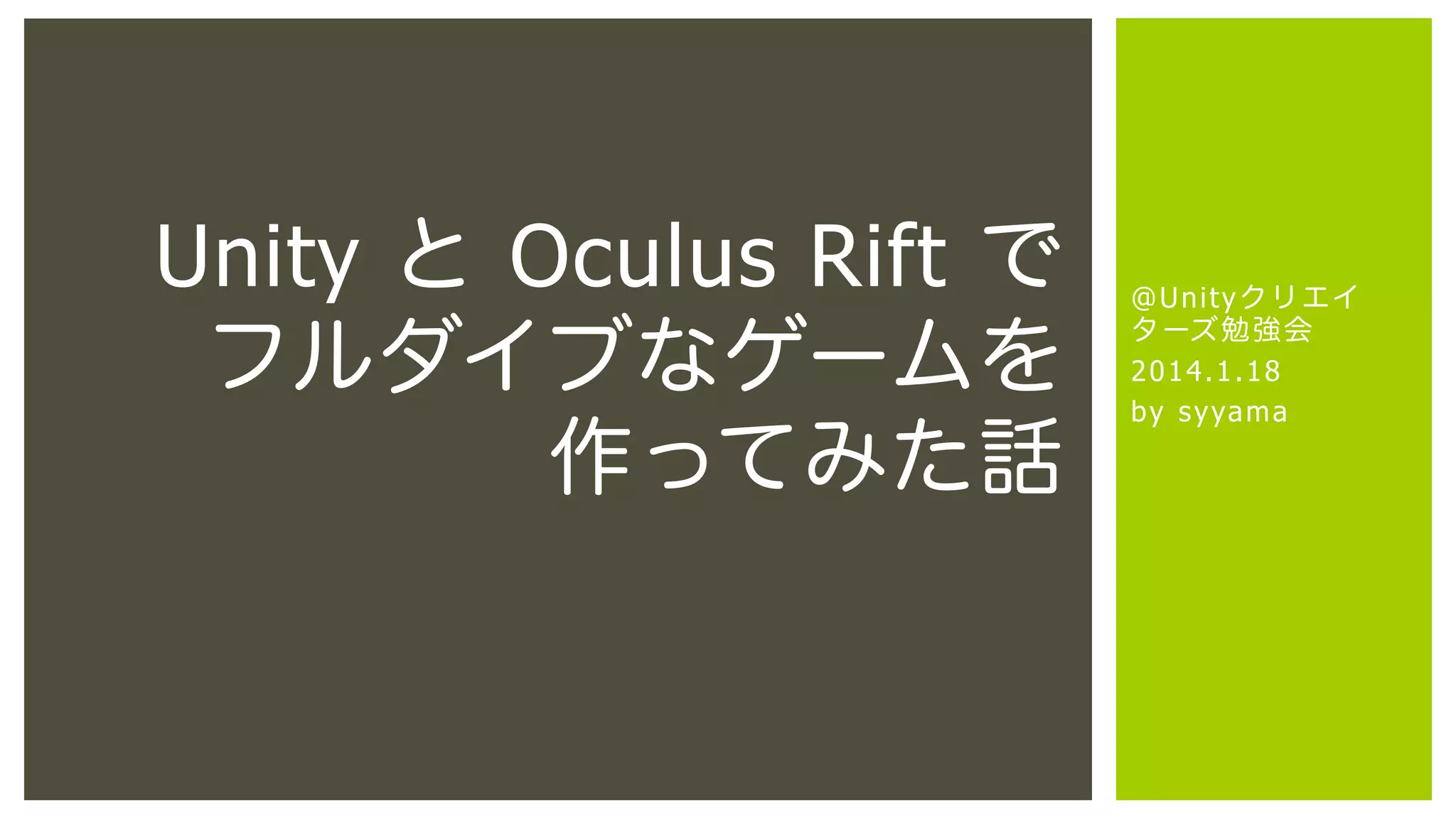 Oculus Rift はまだまだコンテンツ不足なので、 みなさん一緒に作りましょう!!