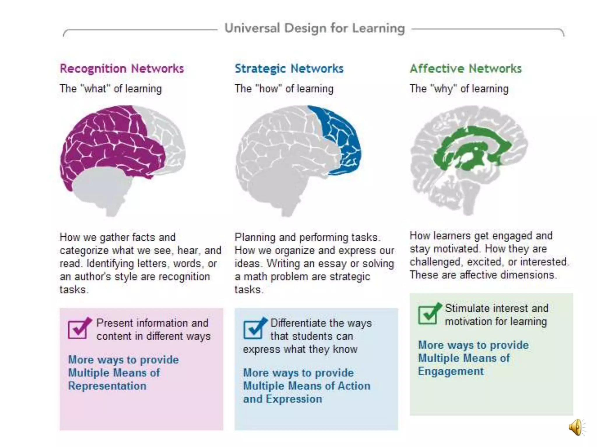 The document discusses Universal Design for Learning (UDL) and its principles that aim to cater to diverse learning needs by offering multiple means of representation, action and expression, and engagement. It emphasizes the importance of understanding how students learn and providing them with various strategies and technologies to reach their potential. Additionally, it offers resources and references for implementing UDL in educational settings.