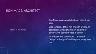 The document discusses Universal Design for Learning (UDL), which extends the principles of universal design in architecture to education, advocating for lessons that accommodate diverse learning needs. It outlines three key principles: multiple means of representation, action and expression, and engagement, emphasizing the importance of flexible teaching methods to enhance student learning and participation. It also stresses the need for inclusionary practices that focus on changing teaching approaches rather than altering the students themselves.