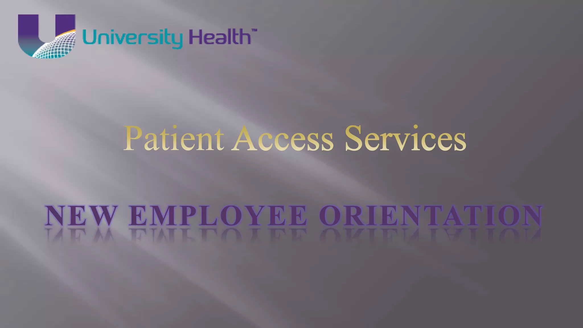 This new employee orientation document provides an overview of policies and procedures for patient access representatives at a university health system. It outlines topics like dress code, timekeeping, scheduling time off, core competencies, and quality assurance. New hires will go through training, learn registration systems, adhere to hospital guidelines, and be oriented to the functions of the patient access department.
