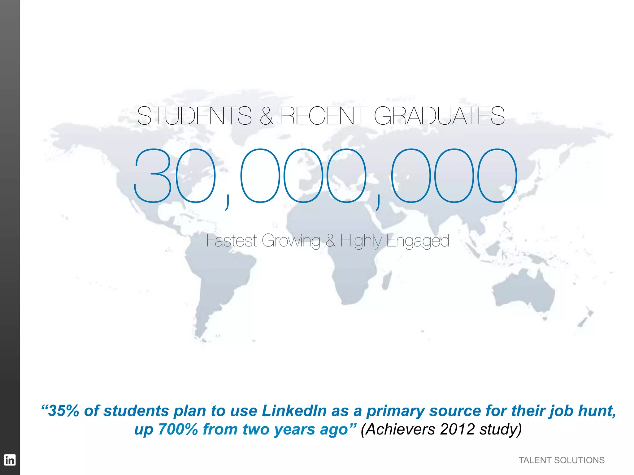 The document discusses how companies can enhance their university recruiting efforts through LinkedIn, emphasizing the importance of engaging with students and alumni. It outlines various talent solutions and tools LinkedIn offers to attract, target, and hire top talent, while providing insights for students on their career paths and educational milestones. The document highlights success stories and strategies for companies to effectively connect with candidates during recruiting events.