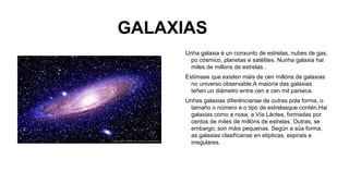 Unha galaxia éun conxunto de estrelas, nubes de gas,