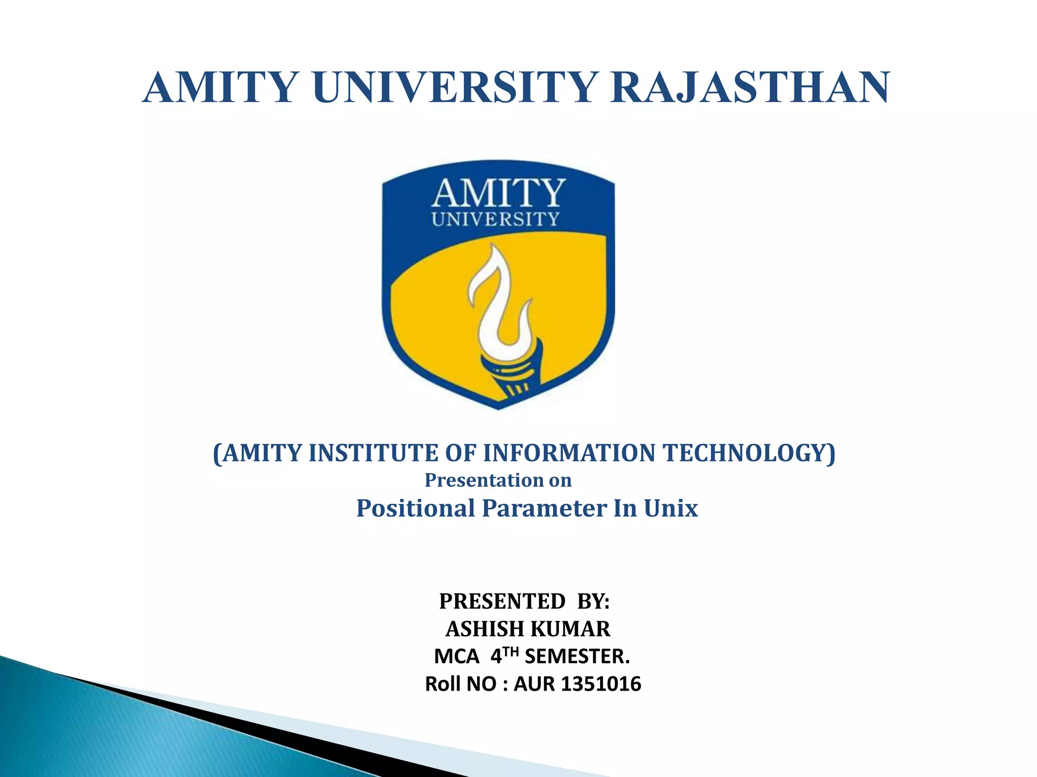 This document presents information about positional parameters in Unix. Positional parameters are a series of special variables ($0 through $9) that contain the contents of the command line. $0 refers to the name of the shell or shell script, $# is the number of positional parameters, and $? is the exit status of the last command executed. Special characters like <, >, |, etc. are also discussed along with their usage in Unix shells.