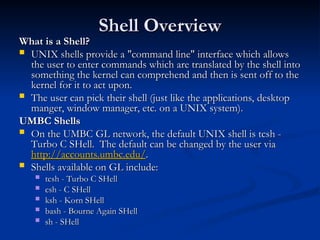 On the UMBC GL network, the default UNIX shell is tcsh -
