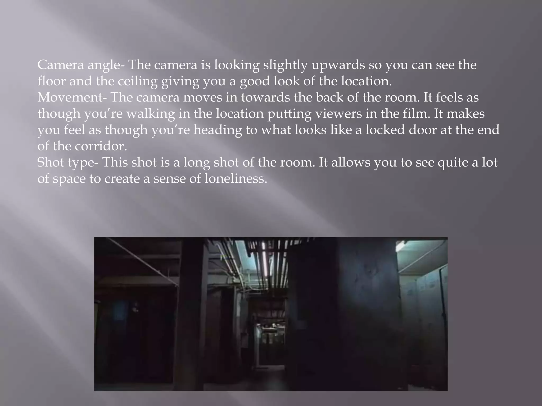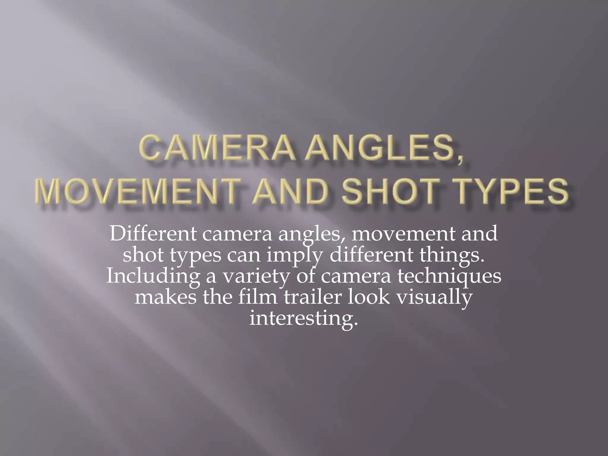 This document discusses different camera techniques used in film trailers, including camera angles, movement, and shot types. It provides examples of how various camera angles like low angles or angles looking up can imply meanings like authority, fear, or confusion. Camera movement like pans and zooms can draw emphasis and immerse viewers. Shot types like long shots and medium shots are chosen to include context or focus on specific elements and facial expressions. The examples analyze how these technical elements create moods, immerse viewers, and convey intended meanings.