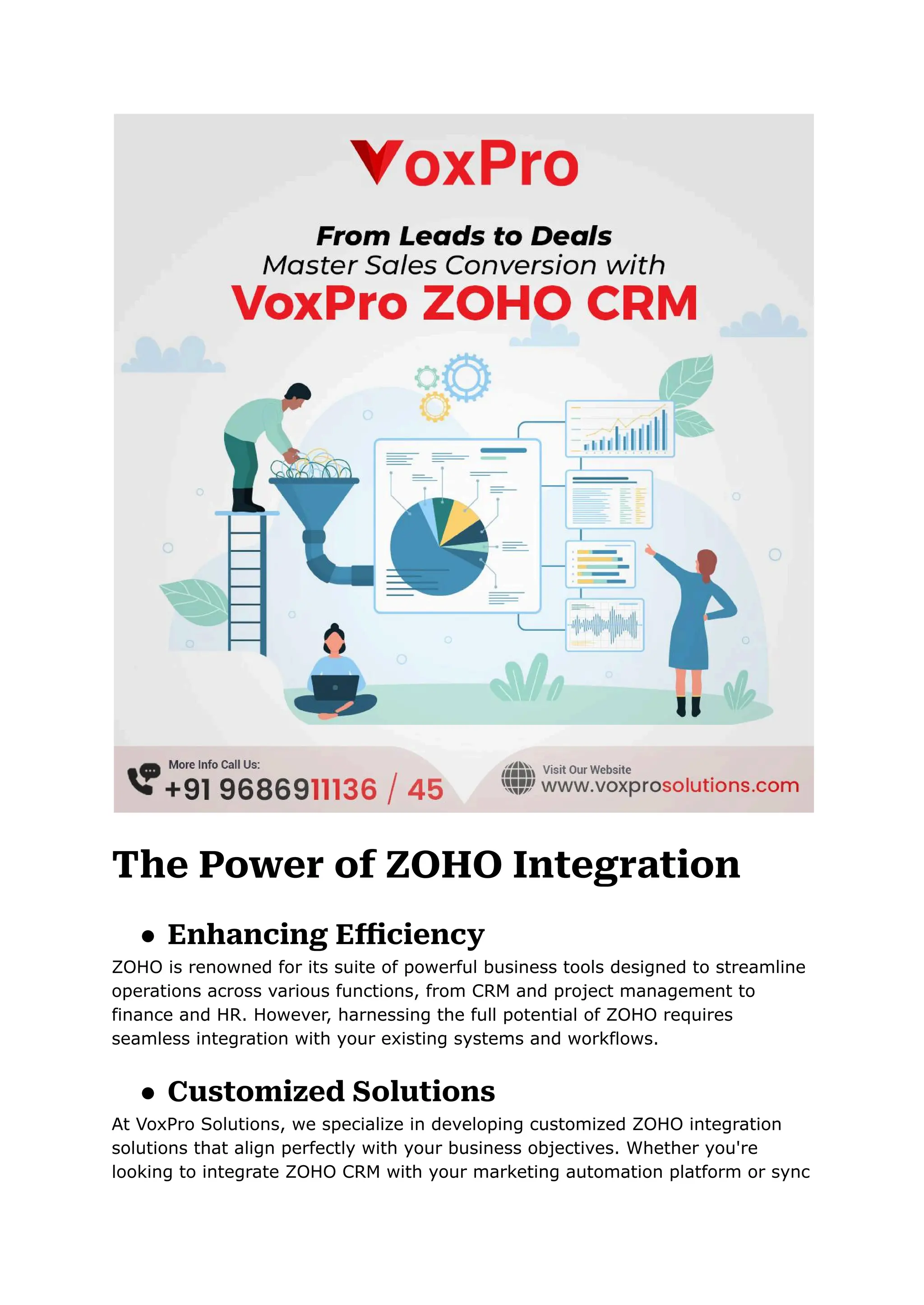 ZOHO offers a suite of powerful business tools designed to streamline various aspects of operations, from customer relationship management (CRM) to project management and beyond. However, to truly harness the power of ZOHO, seamless integration with existing systems is essential. Visit here at https://voxprosolutions.com/solutions.php