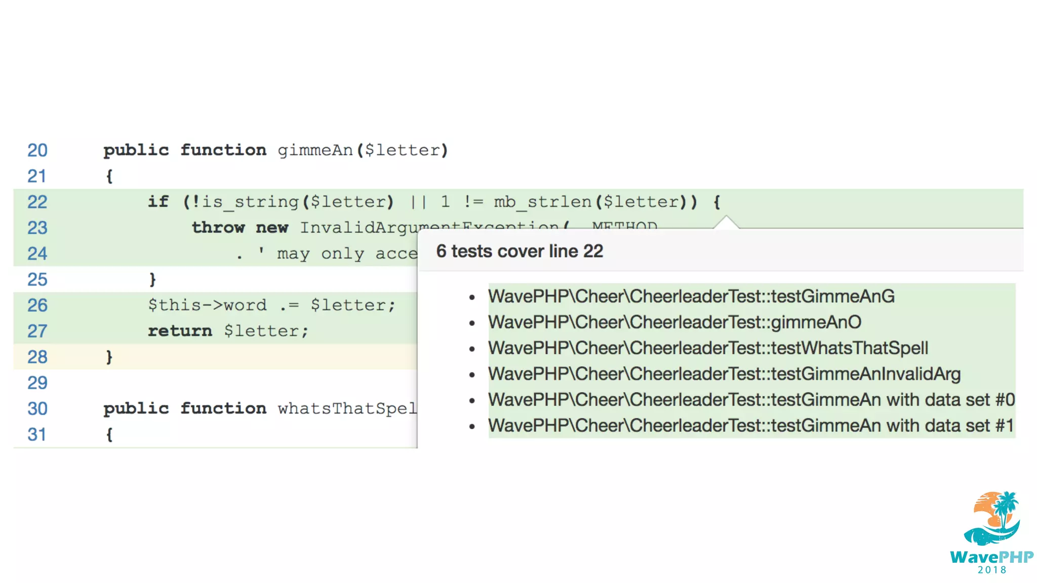 The document provides an overview of PHPUnit, a testing framework for PHP, including installation instructions, basic test examples, and details on unit testing methodologies. It outlines the implementation of a cheerleader class with methods to append characters and return them, as well as error handling and mocking practices. Additionally, it discusses various tests to validate the cheerleader's functionality and proper exception handling during testing.