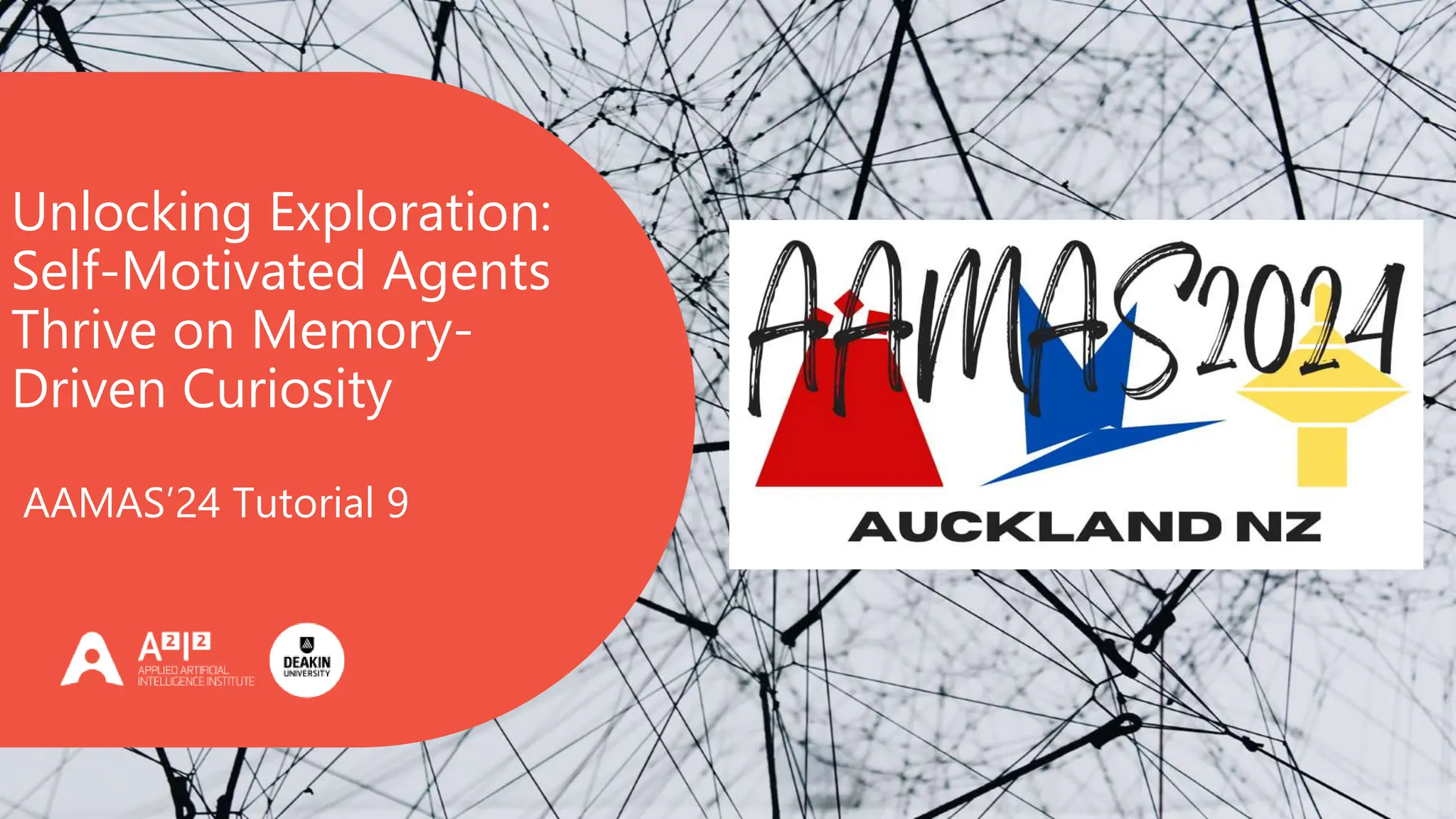 The tutorial on self-motivated agents emphasizes improving exploration in reinforcement learning (RL) through memory-driven curiosity to enhance learning efficiency. It highlights the challenges and strategies in RL, including advanced topics like language-guided exploration and causal discovery. The authors, from Deakin University, aim to address practical issues in RL applications by incorporating memory-based exploration techniques.