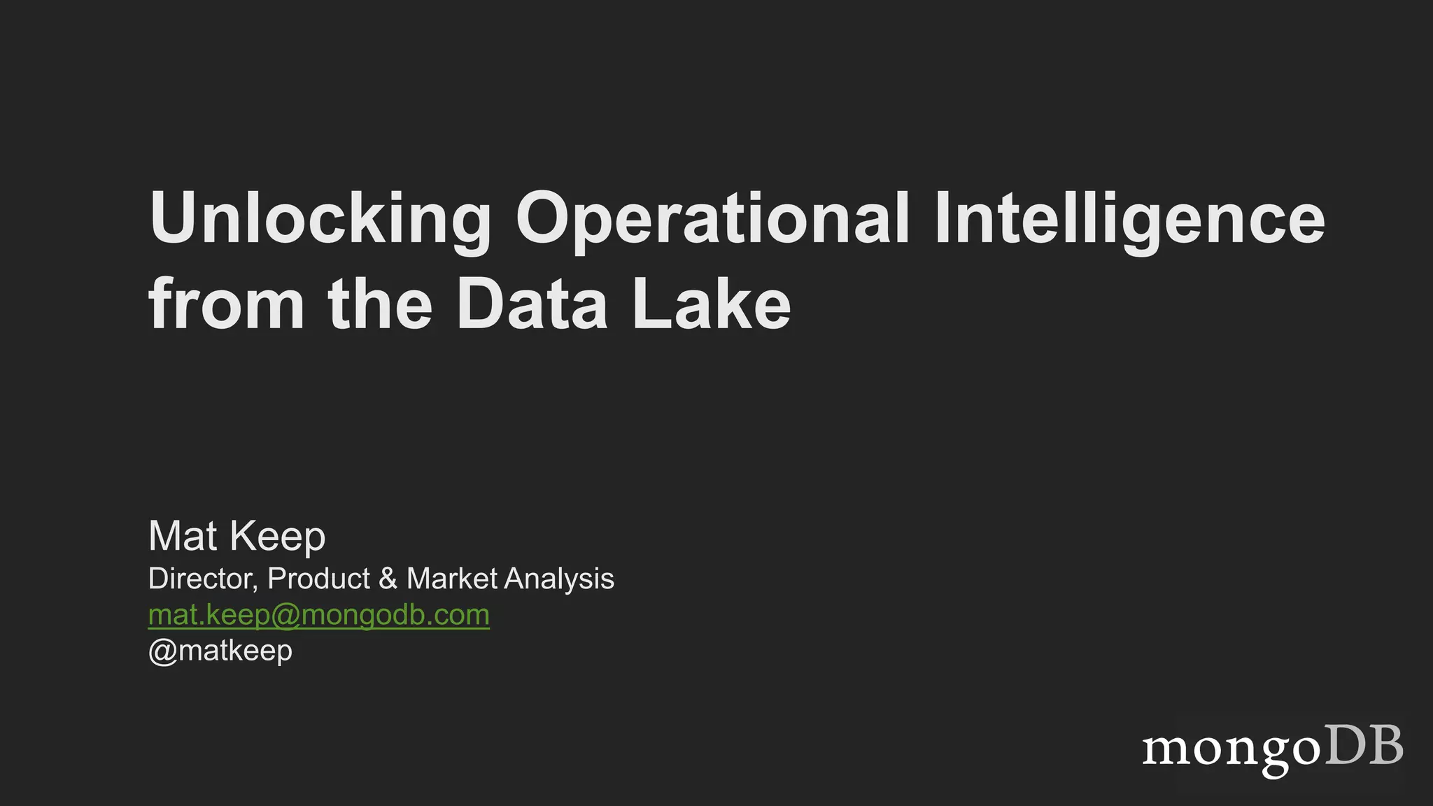 The document discusses unlocking operational intelligence from data lakes using MongoDB. It begins by describing how digital transformation is driving changes in data volume, velocity, and variety. It then discusses how MongoDB can help operationalize data lakes by providing real-time access and analytics on data stored in data lakes, while also integrating batch processing capabilities. The document provides an example reference architecture of how MongoDB can be used with a data lake (Hadoop) and stream processing framework (Kafka) to power operational applications and machine learning models with both real-time and batch data and analytics.