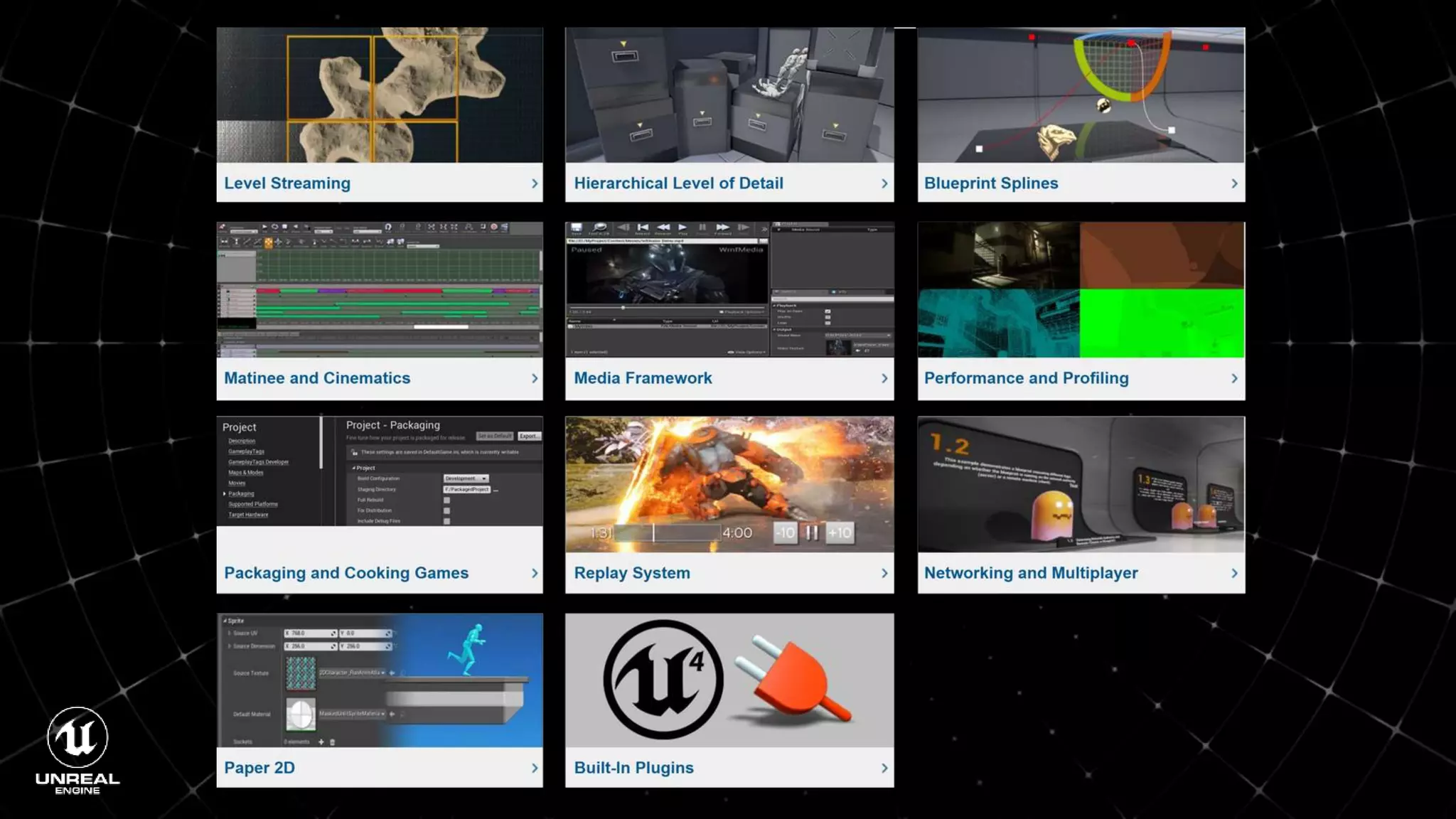 This document outlines documentation resources for learning how to use Unreal Engine. It includes sections on getting started, tools and features, mobile development, VR/AR development, and a style guide. Tutorials are provided for blueprints visual scripting, templates, game jam tips, and additional learning resources. The document serves as a guide to the official Unreal Engine documentation and third party tutorials.