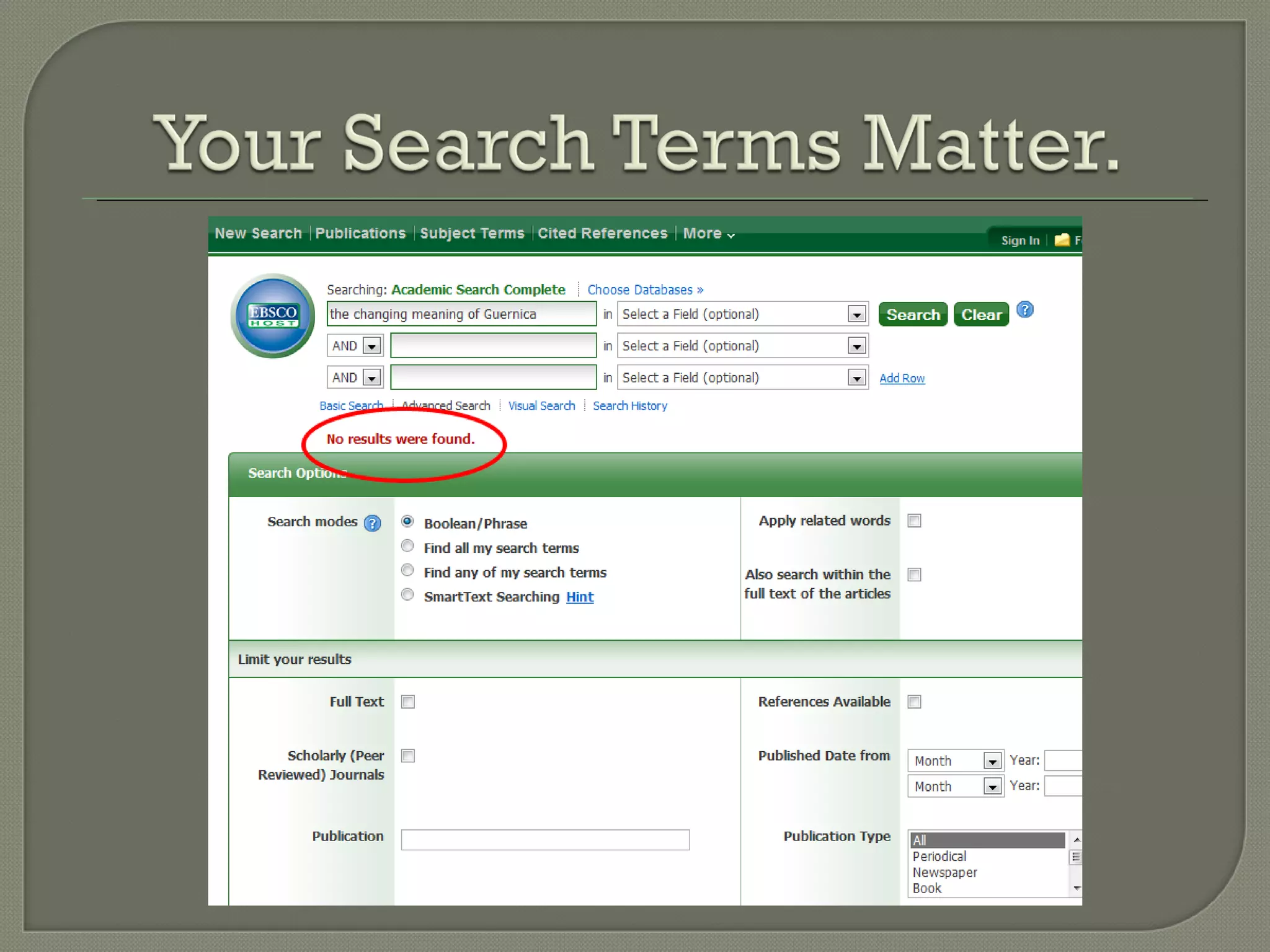 The document provides tips for researching a topic, including thinking of related terms to use in searches, writing down all ideas, and considering the relevance, author expertise, publication details, references, and intended audience of sources. It also lists some specific databases and resources for researching art and history topics, such as the Art Library catalog, Art Full Text, JSTOR, and Historical Abstracts.