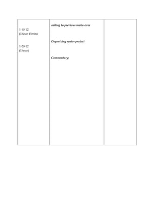Lawrence Garrity's product work log from March 14, 2012 documents his progress on his senior graphic design project. Over several months, he explored graphic design categories, researched creating a project from existing companies or programs, experimented with photo editing software, downloaded and began editing artwork, created possible final designs, and added to and organized his makeover of a previous image as he worked to complete his senior project.