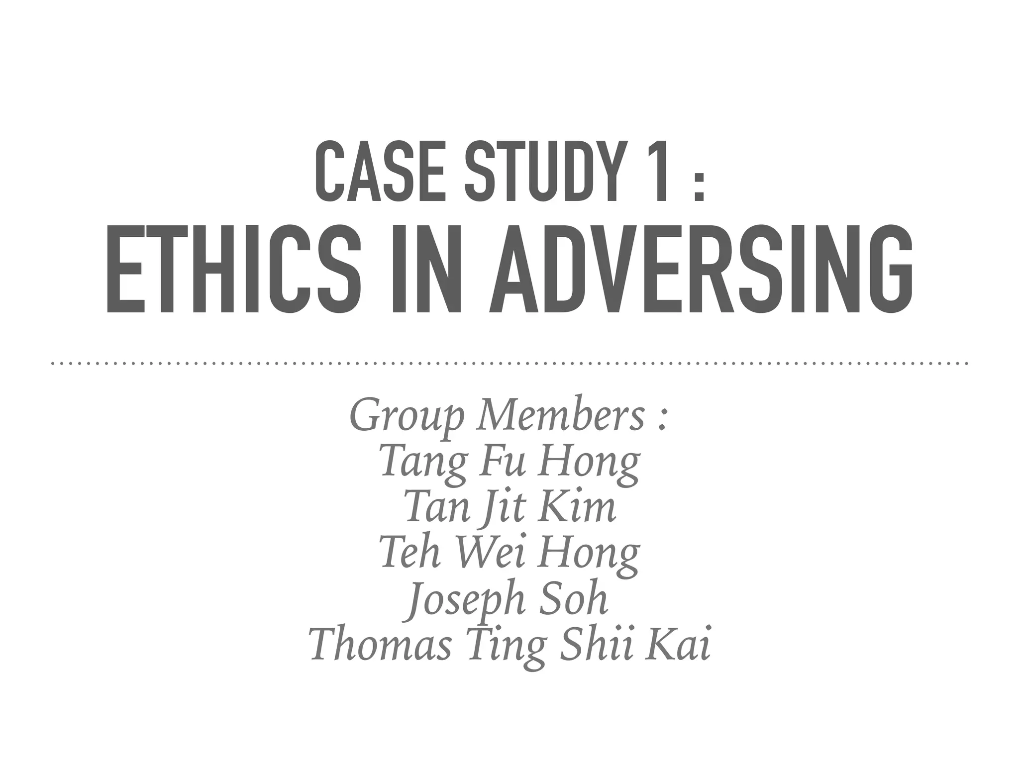 This case study examines ethics in advertising. It defines advertising as producing commercial advertisements to make customers aware of products and services, convince customers they are suitable, create desire, and enhance company image. False advertising refers to using fake statements to promote products and confuse consumers. Some companies engage in false advertising to attract customers with attractive but untrue ads. Solutions include laws against deceptive claims and educational videos to prevent deception.